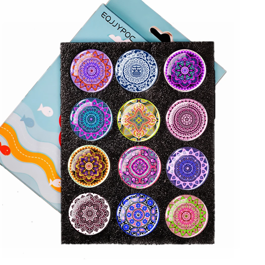 Магниты на холодильник в стиле ретро, мандала, цветы, круглая стеклянная магнитная наклейка на холодильник, держатель для заметок, аксессуары для дома, 12 шт., 30 мм