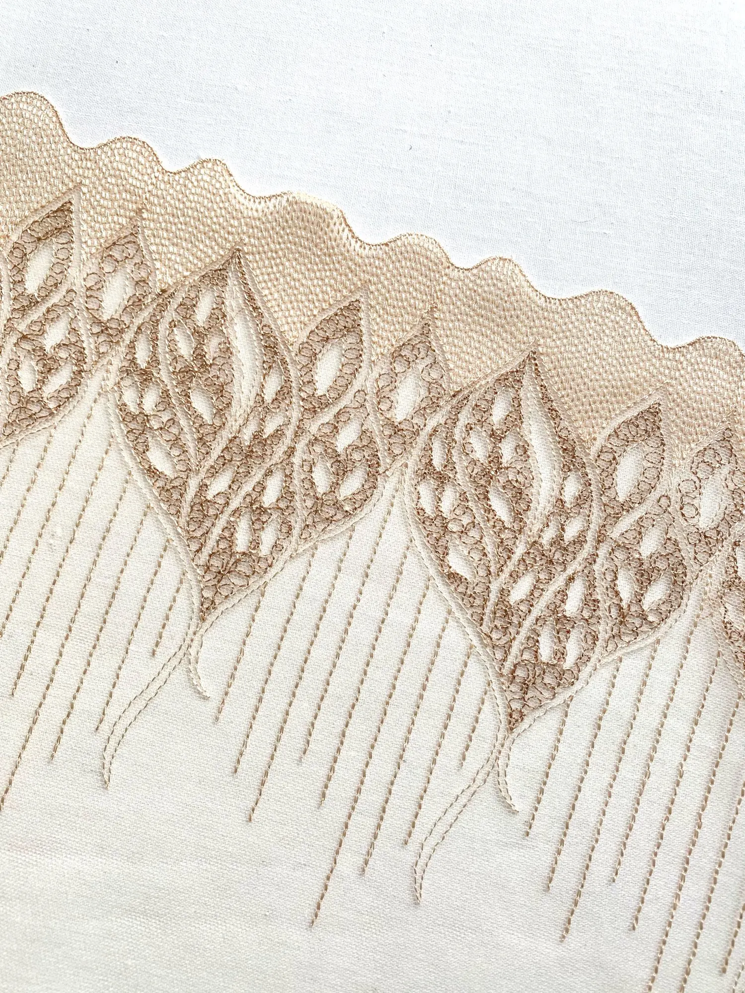 Кружево пришло целое, красивое, на не эластичной сетке и очень быстро. Продавец отрезал на 25см больше и положил 3 фестона в подарок. Спасибо, буду заказывать ещё!!