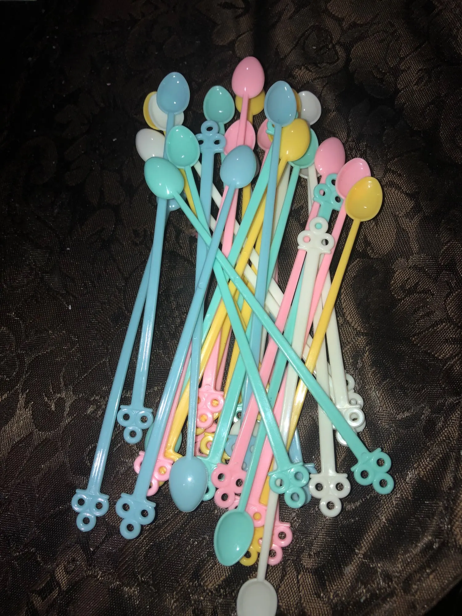 Ложечки очень удобные, удобно мешать (брала для эпоксидной смолы), плотный пластик. В общем, продавца рекомендую, доставили за 15 дней)