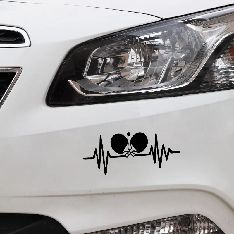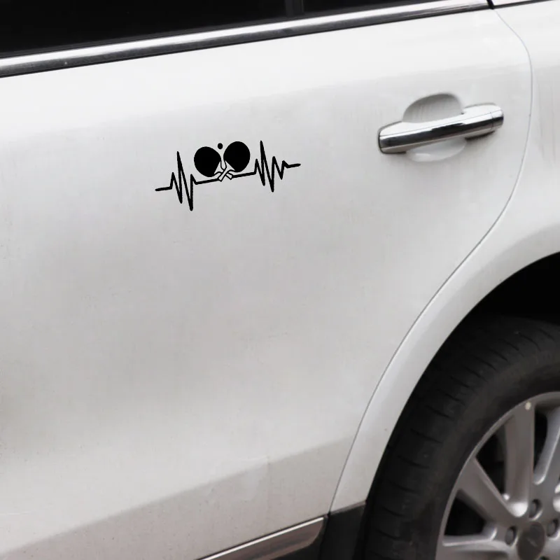 YJZT 17,2 см * 7,3 см веселая настольная теннисная пинг сердцебиение виниловая чернаясеребряная Автомобильная наклейка