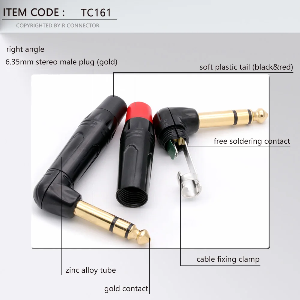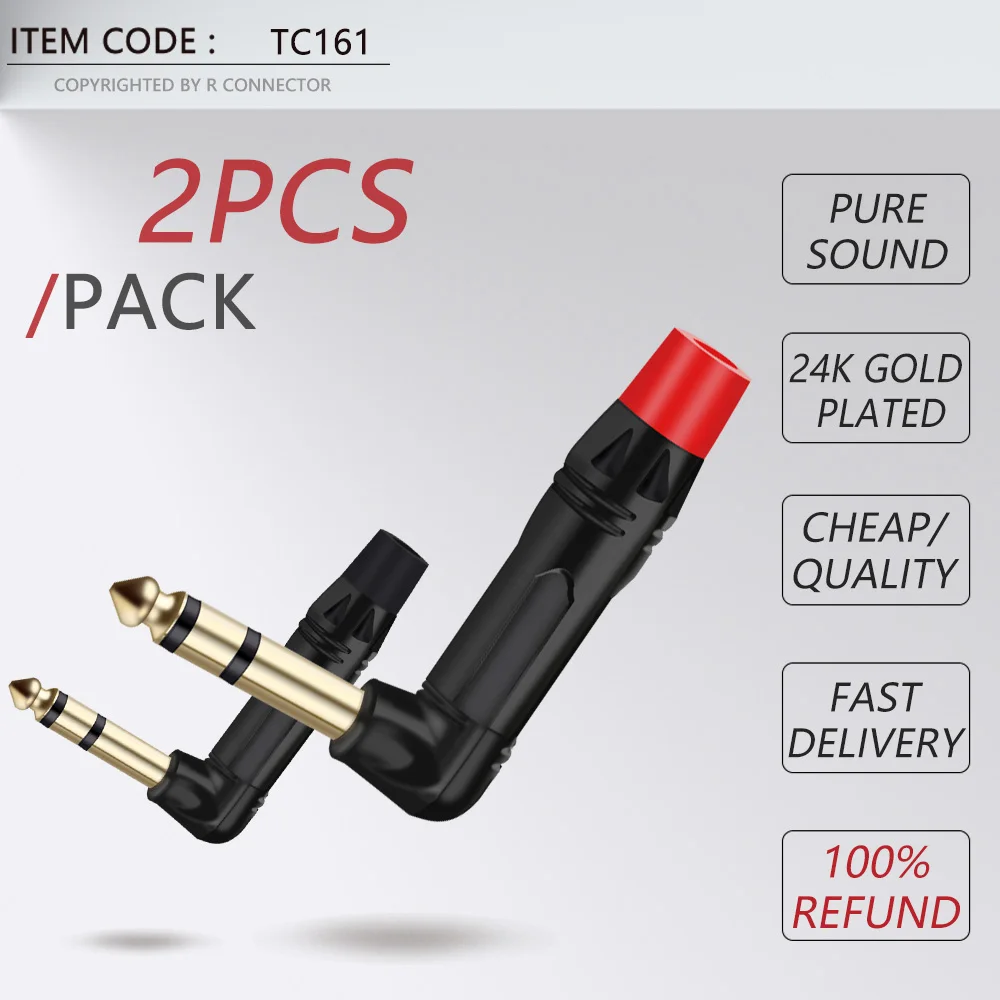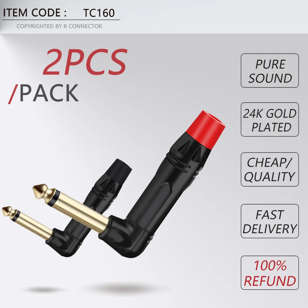2 шт. прямоугольный разъем 6,35 мм моностерео 6,3 мм штекер латунь позолоченный 14 дюйма разъем для микрофона