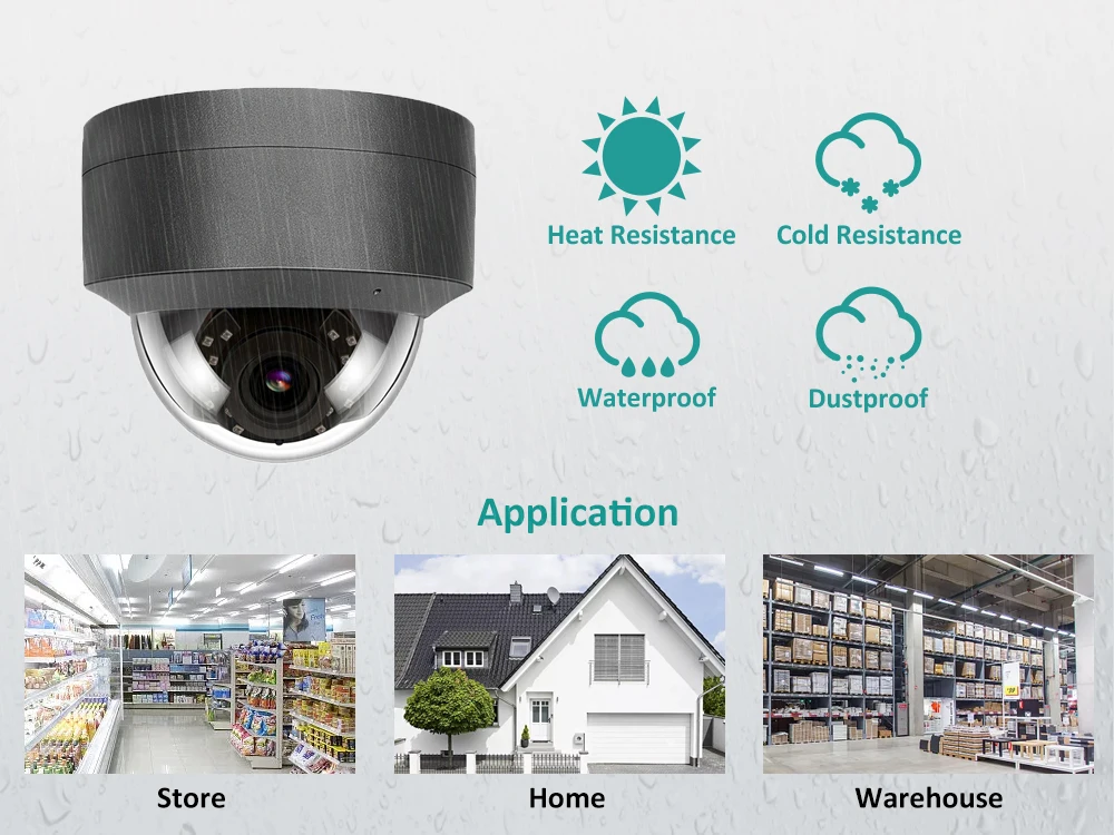 Наша камера подходит как для наружного, так и для внутреннего использования. IP66 Всепогодный Дизайн для использования в нескольких сценариях (офис, улица, дом, фабрика, рынок и т. Д.). Рабочая температура камеры:-25 °C ~ 50 °C (-13 ℉ ~ 122 ℉)