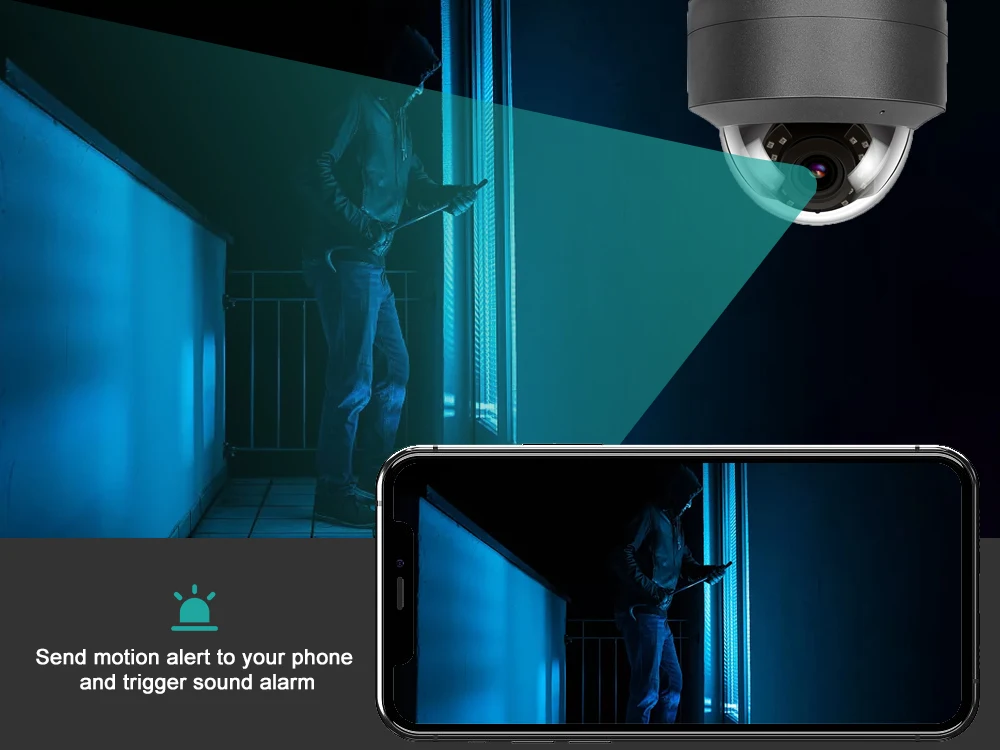 Включите Интеллектуальное обнаружение движения. Когда обнаруживается аномальное вторжение, информация о тревоге будет переведена в мобильное приложение в режиме реального времени, и все отклонения находятся под контролем, не ограничиваются расстоянием.