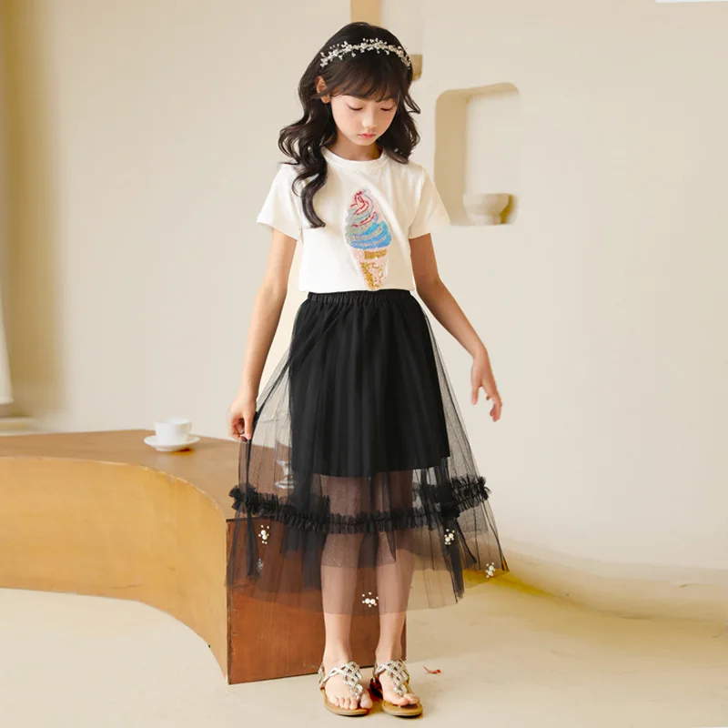Юбка для девочек, повседневная, весенняя, для подростков, длинная, бальная