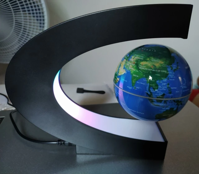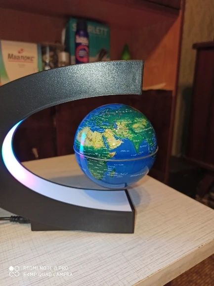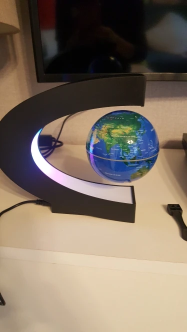 Очень хорошо Очень сложно сделать первый раз, но как только вы получите его довольно легко. Не используйте «тоже». Удерживайте Глобус и перемещайте его вверх, вы почувствуете, что верхний магнит тянет, Затем остановите и дайте ему повесить.