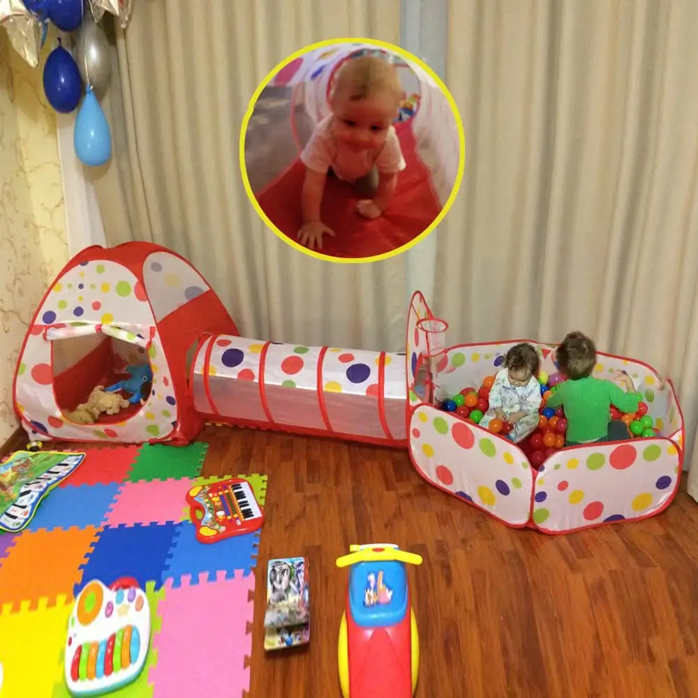 Портативная детская палатка 3-в-1, сухой бассейн тип, всплывающая вигвам с туннелем, палатка для детей, для улицы, большое пространство, детская палатка, дом