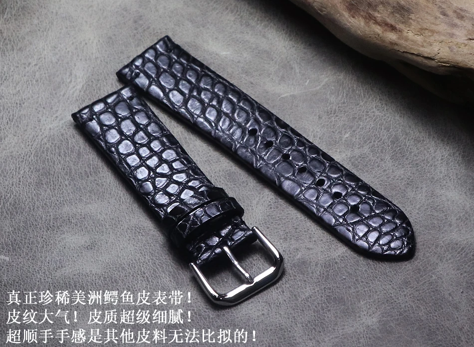 Мягкий тонкий ремешок ручной работы для наручных часов, черный синий браслет из американской крокодиловой кожи для мужчин и женщин, 16 мм 18 мм 19 мм 20 мм 21 мм 22 мм