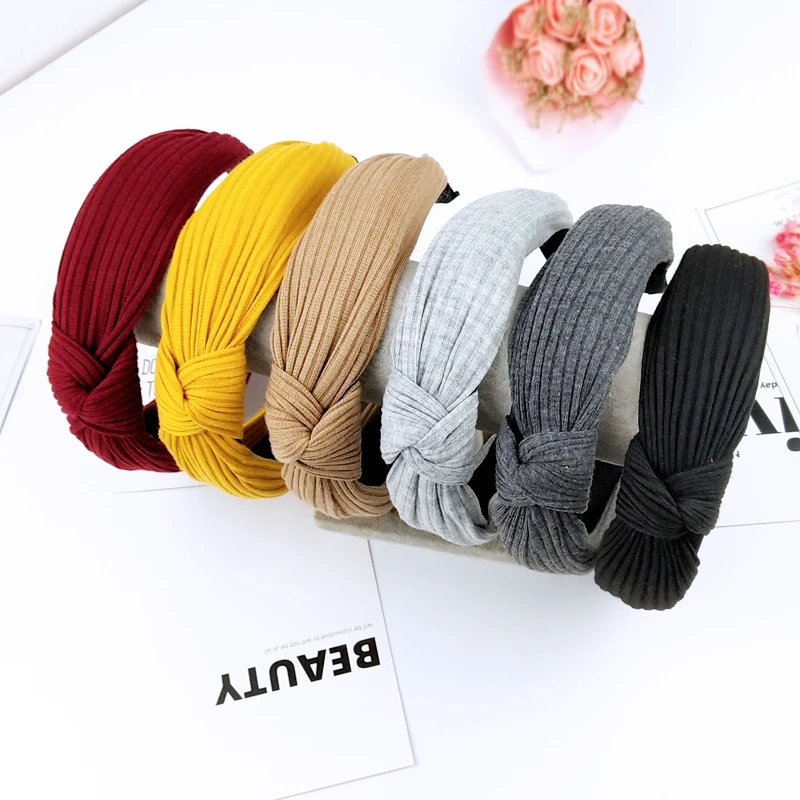 Повязка для волос женская, мягкая, вязаная, с перекрестным узлом, C02