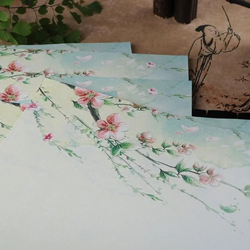 Бумага для письма в китайском стиле, 8 шт.лот, бумага для печати, винтажные цветы, студенческие канцелярские принадлежности, офисные и школьные принадлежности