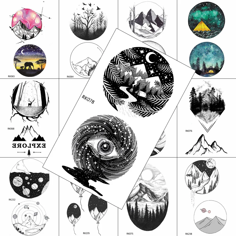 3D Поддельные Временные татуировки планеты наклейка Луна Горы Водонепроницаемая Татуировка черный круглый глаз боди арт живопись тату для мужчин женщин