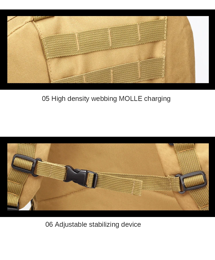 Характеристика:1. Большая емкость 50 л, с 3 съемными моллевыми мешками, прикрепленными спереди и двумя сиденьями. 4 сумки могут быть разделены, удобны и портативны;2. Профессиональный дизайн карман для сумки для воды, может разместить различные размеры сумки для воды;3. Полностью регулируемый ремень и пояс.4. Широкий и толстый пояс, удобный для переноски.5. Изготовлен из нейлона 600D, износостойкий, прочный.Примечание:Из-за различных измерений допускается погрешность в 1-3 см.Из-за разницы в цвете на дисплее возможна небольшая разница. Это нормально.