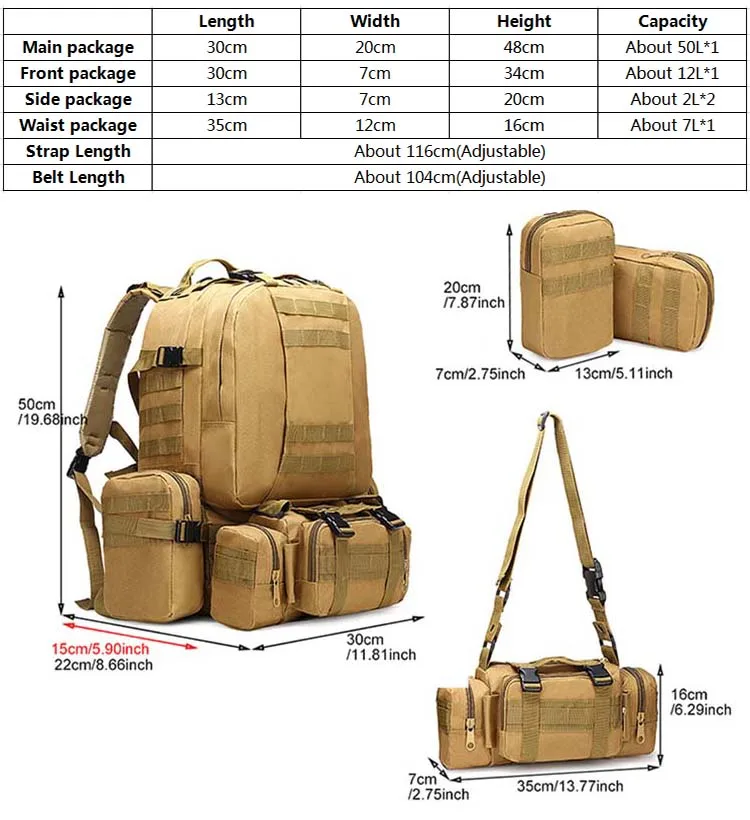 Тактический рюкзак 4 в 1, водонепроницаемый рюкзак для походов, походный рюкзак, мужской рюкзак для кемпинга
