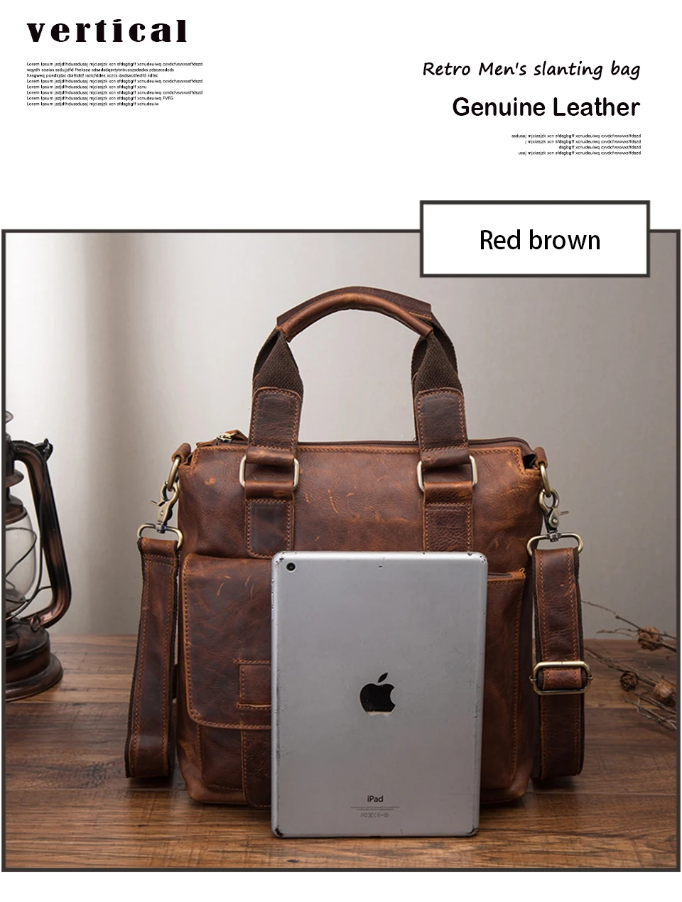 Мужской деловой портфель из высококачественной кожи в старинном ретро-стиле, чехол для ноутбука 12 дюймов, портфель, сумка-тоут через плечо, B259