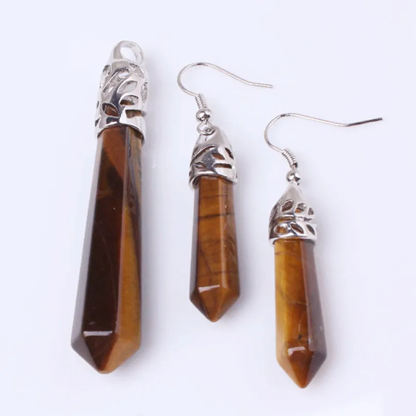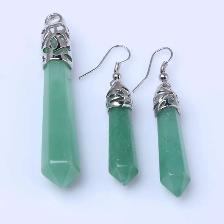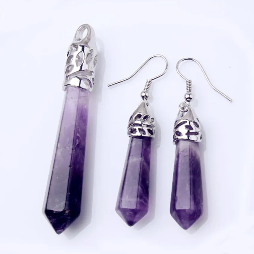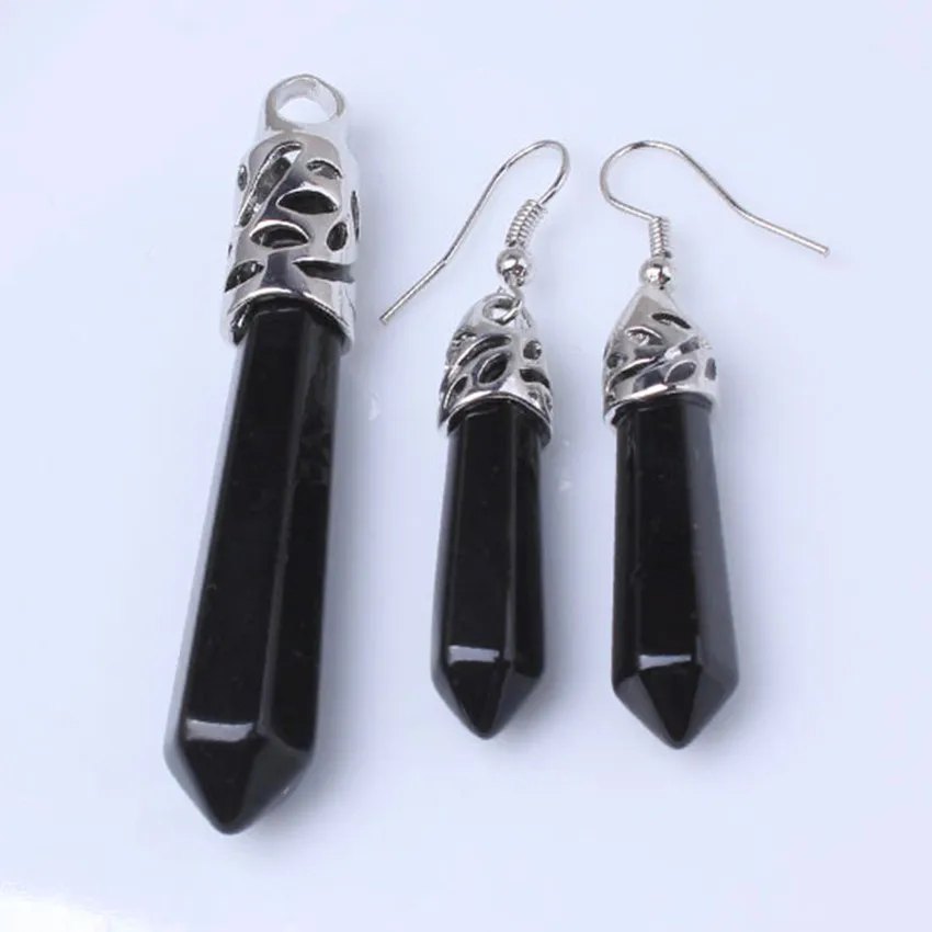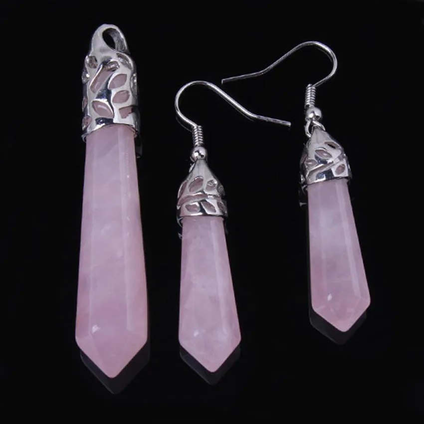 KFT натуральный исцеляющий кристалл Кварцевый Камень шестиугольник Призма Маятник Камень «Reiki» кулон серьги для женщин и мужчин ювелирные наборы