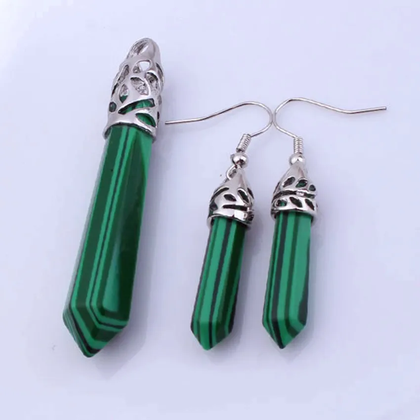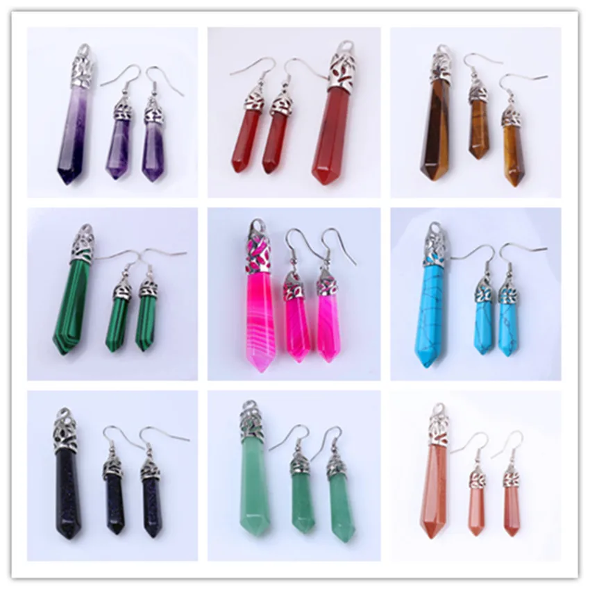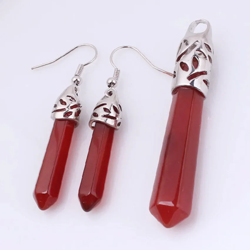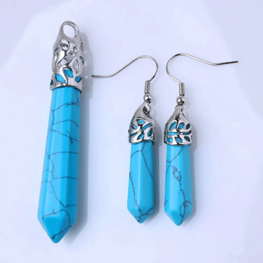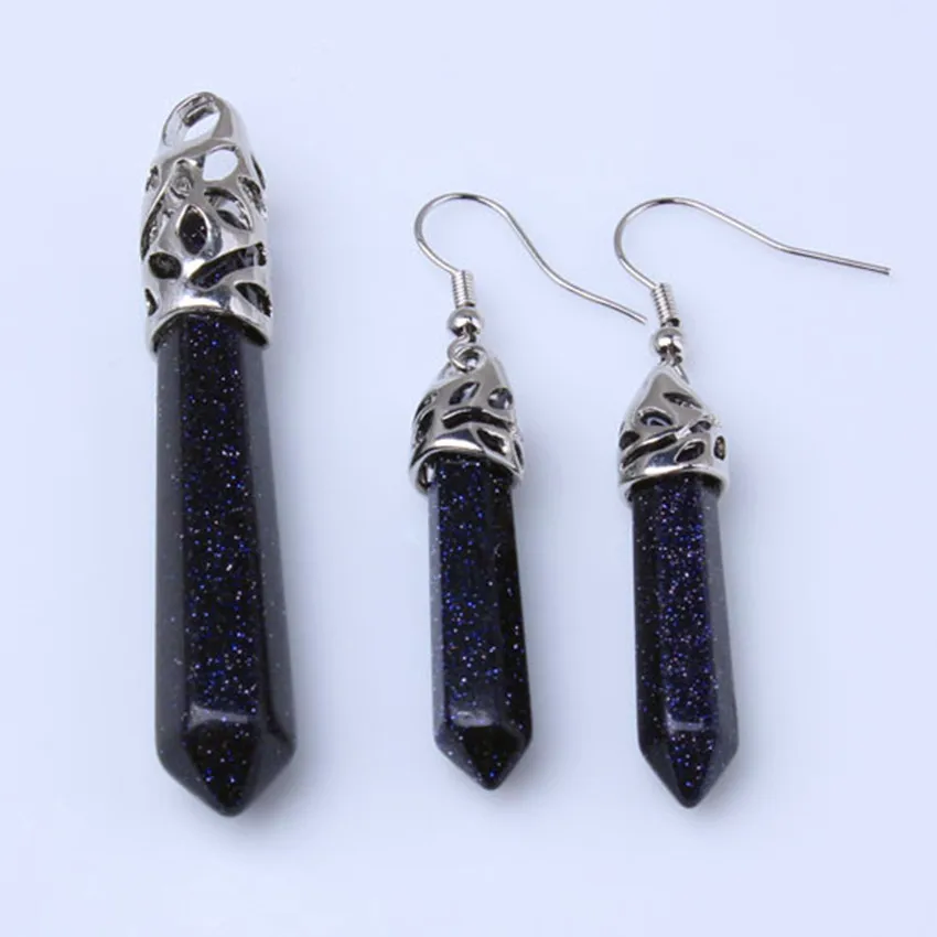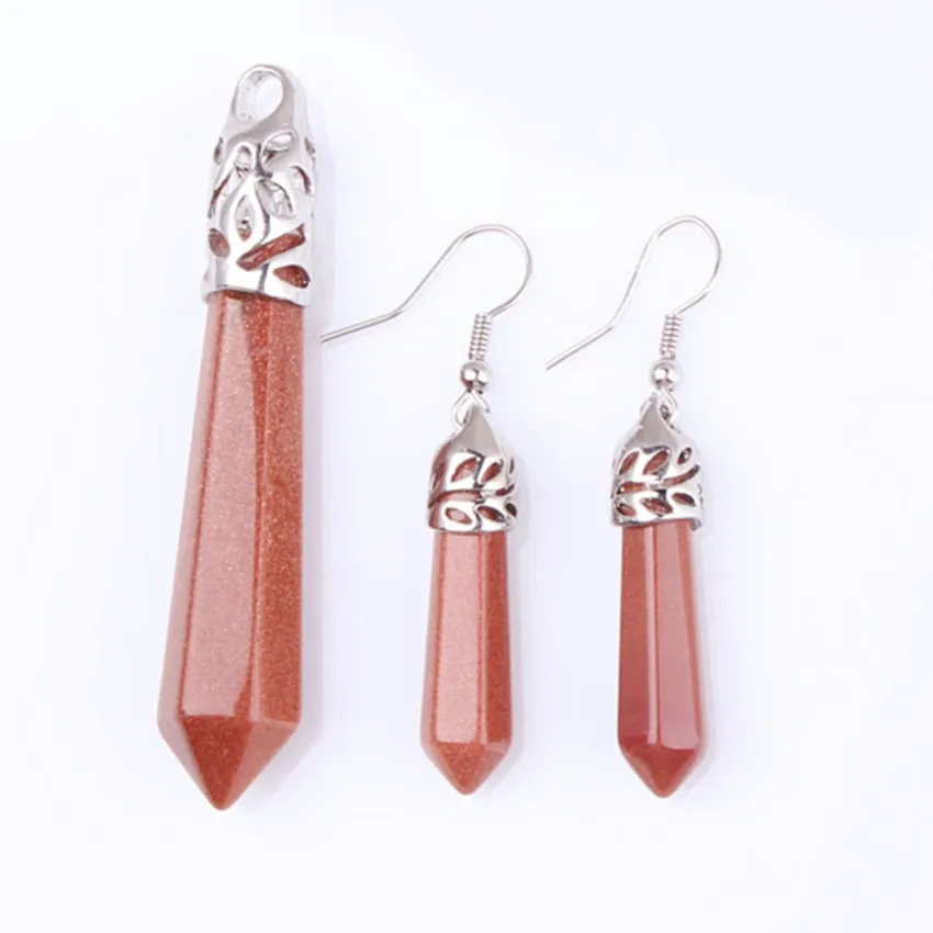 KFT натуральный исцеляющий кристалл Кварцевый Камень шестиугольник Призма Маятник Камень «Reiki» кулон серьги для женщин и мужчин ювелирные наборы
