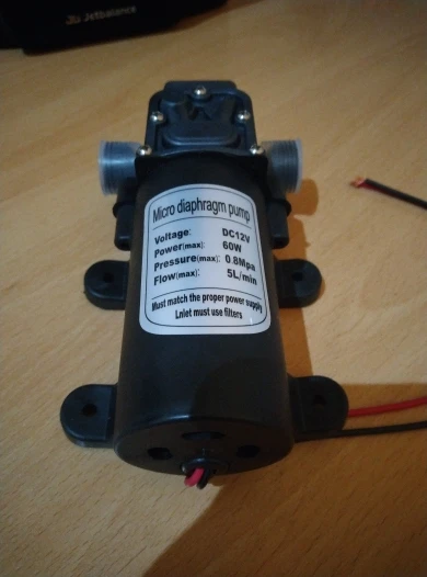 Включал дома кратковременно от 12,3В. Работает не шумно. Давление создает, так как заглушка пластиковая старалась вылететь (сидит она очень плотно) и если бы внутри насоса чуток больше было воды она стрельнула бы как шампанское. Пока всем доволен.