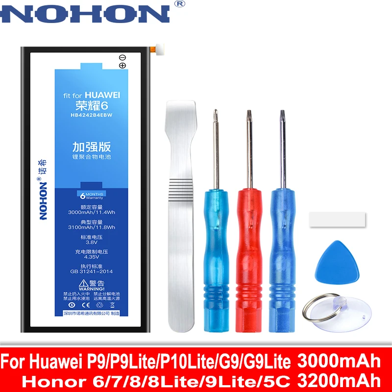 Литий-полимерный аккумулятор NOHON HB4242B4EBW HB494590EBC для Huawei P9 P10 G9 V9 8 9 Lite Honor 6 7 8 9 4X 5C 7C 7A Enjoy 7S V9