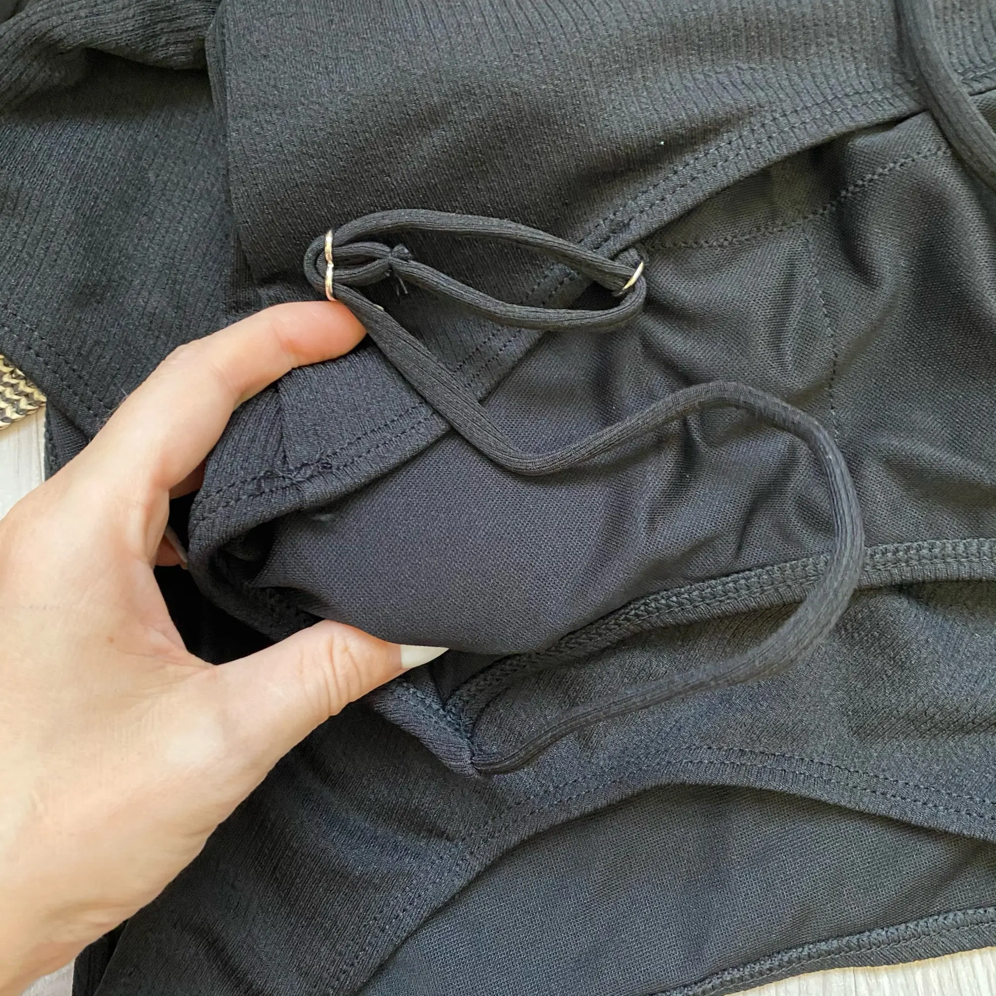 Ткань трикотажная в рубчик. Достаточно плотная, не сильно тянется, есть подкладка. В груди есть вкладки. Отдельно идёт плетёный поясок. Купальник классический, спина закрыта. Смотрится очень целомудренно но в тоже время сексуально. Так хорошо обтягивают фигуру. Качество очень высокая. На 88 – 60 – 94 игры третий размер подошел отлично. На рост 172 не короткий. Я заказала размер S