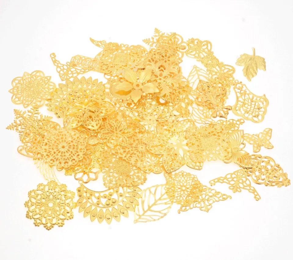 Бесплатная доставка! 30 шт. золотистые разные коннекторы металлическая филигрань оберток металлические поделки подарочные украшения сделай сам