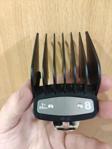 Товар соответствует описанию. Визуально и на ощупь сделан хорошо. Отправлен продавцом и доставлен покупателю быстро. Упаковка в пластиковый пакет нескольких направляющих расчёсок валом никуда не годится. В результате вовремя доставки одна расчёска 25 мм (№8) из шести была сломана. Деньги за неё обещали вернуть быстро. Продавцу необходимо обратить внимание на упаковку отправлений, чтобы в будущем не портить впечатление о магазине. На машинку WMARK крепится хорошо и надёжно, ножи не цепляет, всё Ок. P.S. Продавец и товар хороший, упаковка дрянь: для пересылки почтой хрупких изделий не годится.