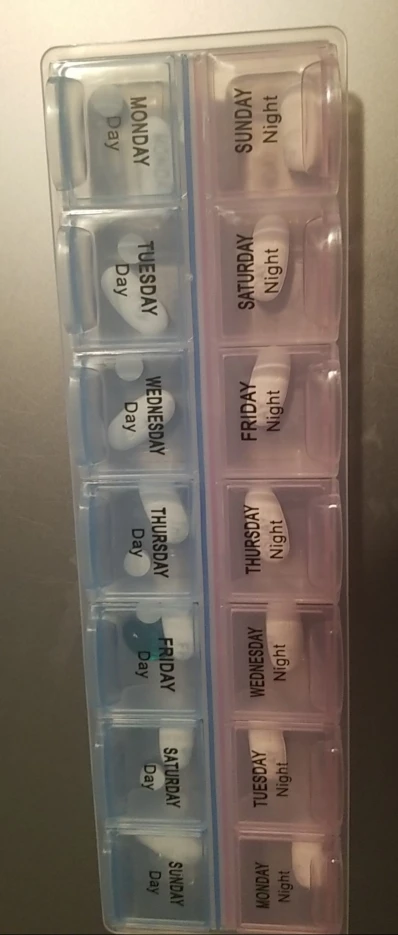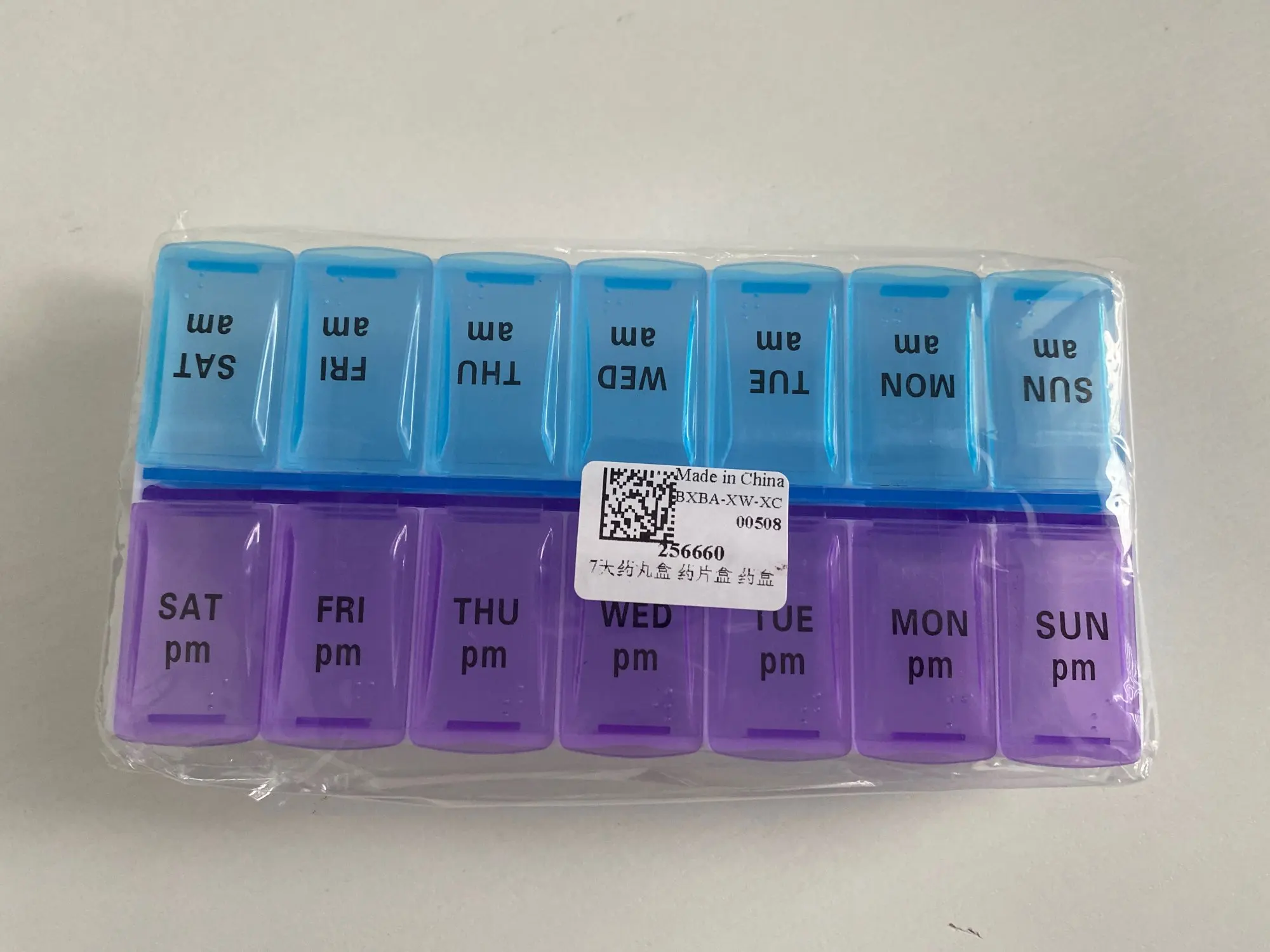 Товар, как описано. Отсеки хорошего размера и открываются/закрываются плавно. Сам чехол имеет приличный размер и легко помещается в ящике. Одна вещь заключается в том, что обе стороны не соответствуют. Например, слот для понедельника am не имеет слот для понедельника pm на другой стороне. Вы должны повернуть чехол для pm row. Посмотрите на мою фотографию для более близкого взгляда. Это не было проблемой для меня. Доставка занимает 4 недели, это было отлично для меня. Ранее Мои Заказы брали несколько месяцев, поэтому я был очень доволен.