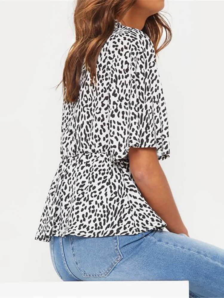Блузка женская летняя с глубоким V-образным вырезом и расклешенными рукавами