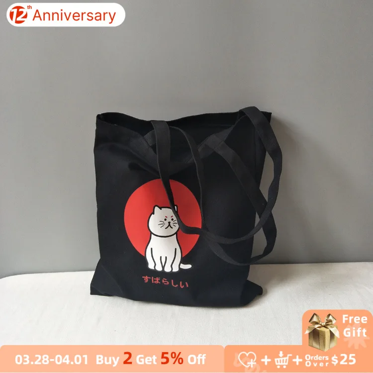 Холщовые сумки 2019, сумка через плечо с мультяшным котом для покупок, сумка-тоут, повседневная школьная дорожная Женская Складная сумка-мессенджер
