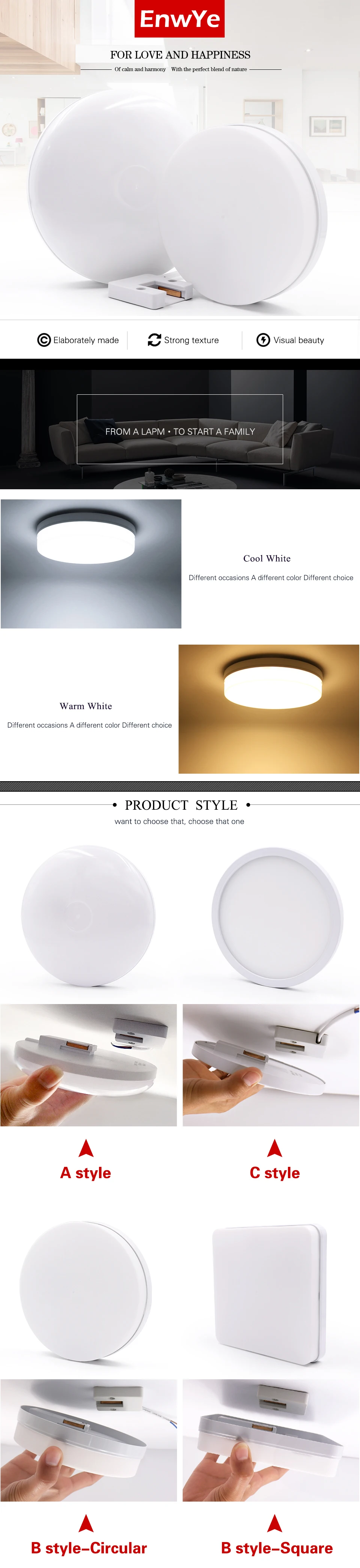 Светодиодный светильник EnwYe 6 Вт, 9 Вт, 13 Вт, 18 Вт, 24 Вт, 36 Вт, 48 Вт, Круглая Панель, светодиодный потолочный светильник, 85-265 В переменного тока, светодиодная светодиодный Па