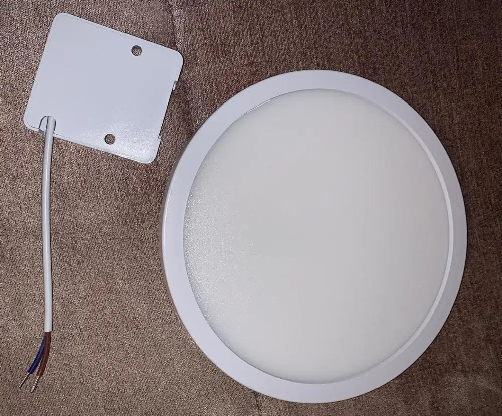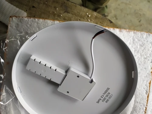 Товар приехал в помятой пенопластовой упаковке, но внутри всё было цело. Светильник небольшой. В «комплекте поставки»: светильник, два дюбеля и два винта для крепления на стену/потолок. Провода тоненькие; крышка, закрывающаяся заднюю часть по краям не очень ровная, но неплохо крепится к светильнику (после установки её будет не видно, но могли бы сделать и аккуратнее). После подключения дополню отзыв.