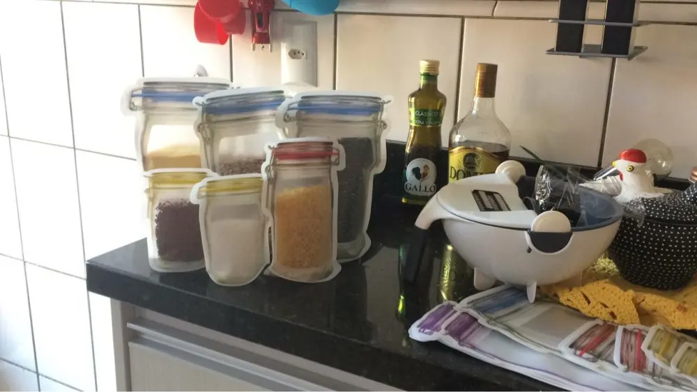 Заказ пришел за 3 недели до Москвы. Упаковка целофан. На первый взгляд, качество хорошее. Плотный пластик. Брала для экономии пространства, когда крупа или паста заканчиваются. Плюс симпатично смотрится. Насколько хватит в эксплуатации, посмотрим. С продавцом не общалась.