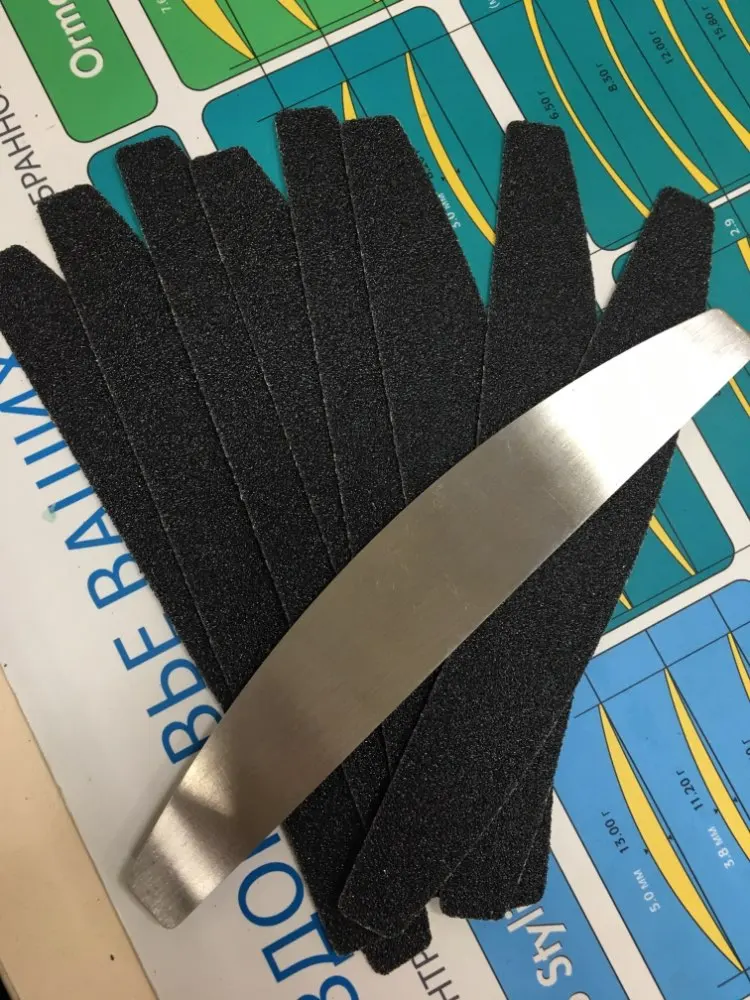 100 для опила нарощенных ногтей самое то, для натуральных грубая слишком. Железная основа крепкая, не гнется, клеется и отклеивается легко. Спасибо продавцу