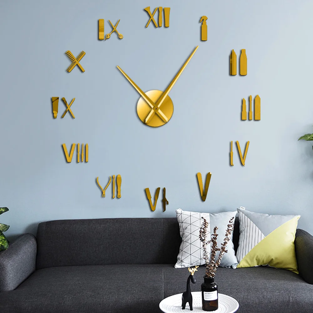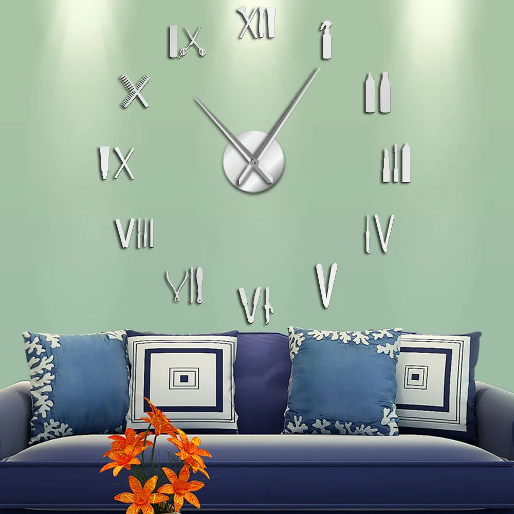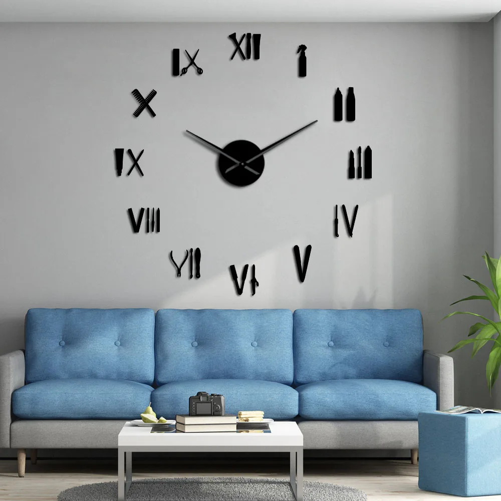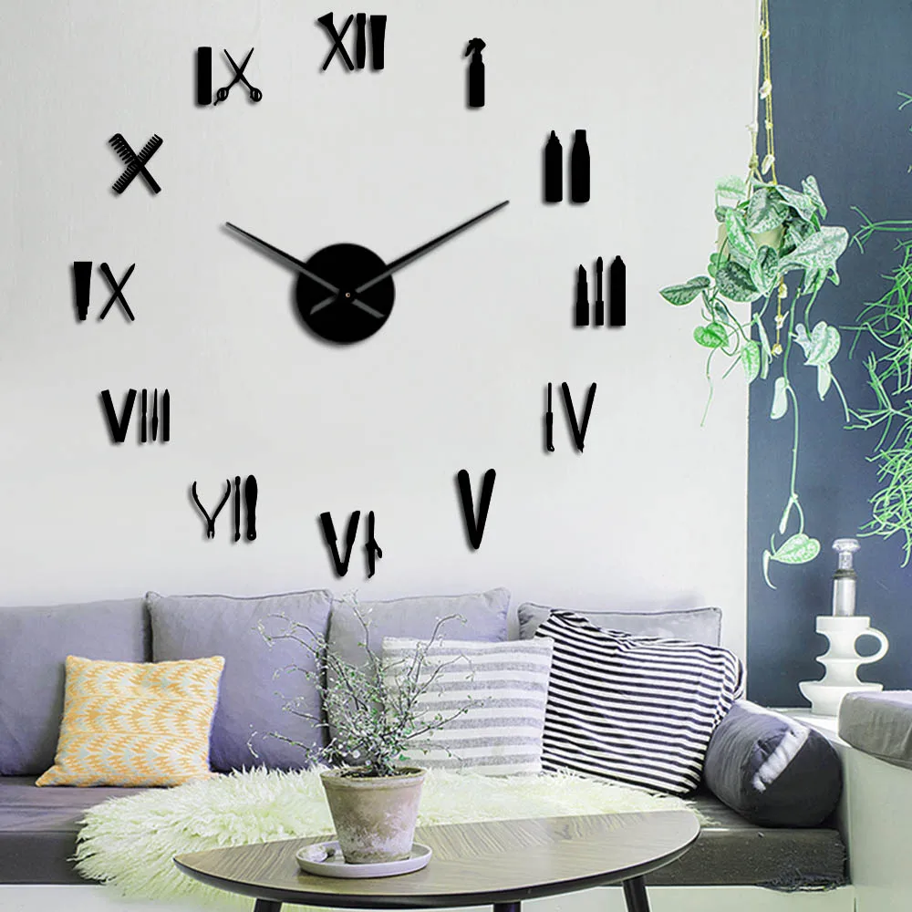 Парикмахерские инструменты DIY наклейки на стену Парикмахерская Красота Парикмахерские стены Искусство Декор Парикмахерская DIY большие бескаркасные часы настенные часы