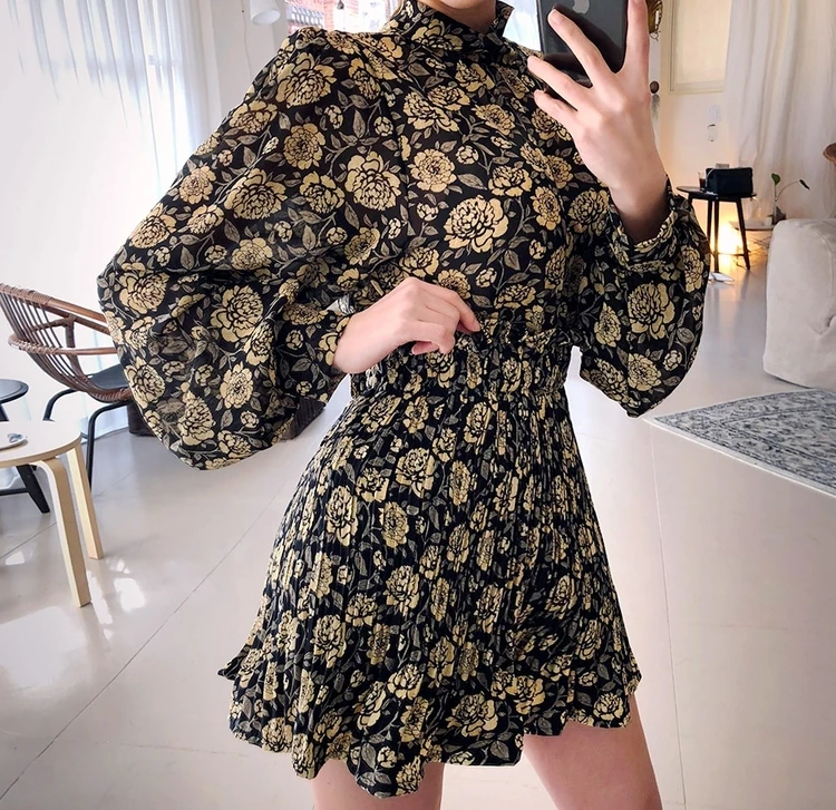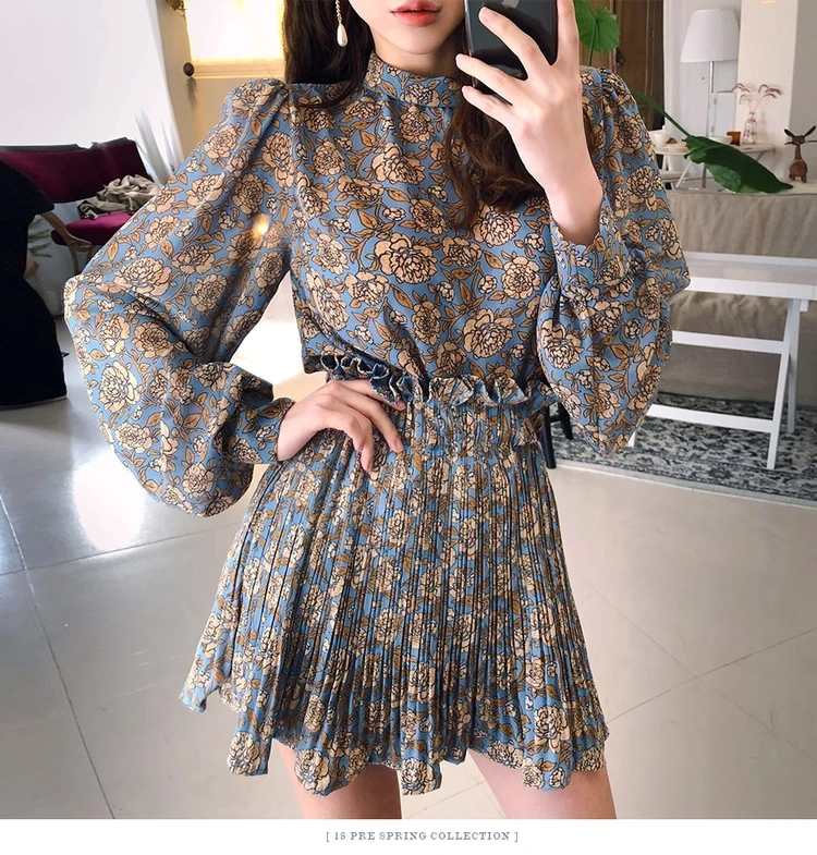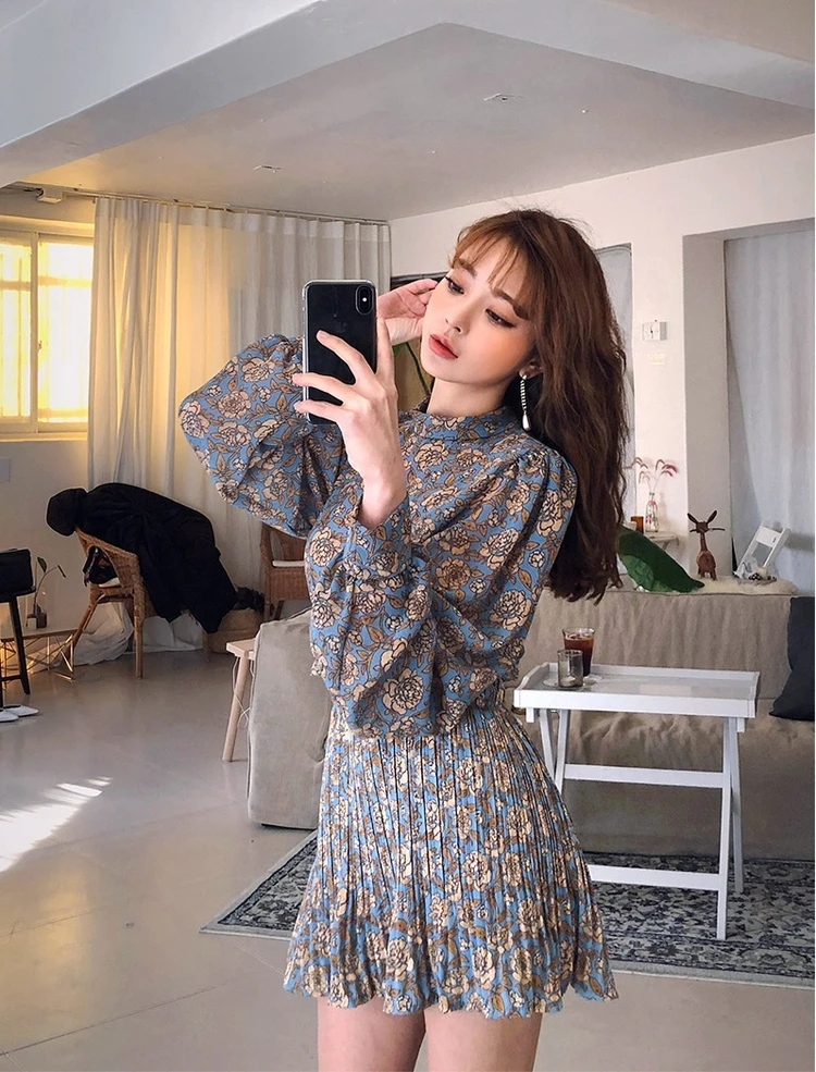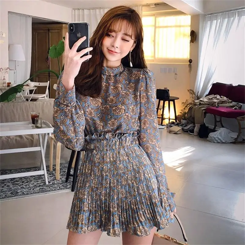 Для женщин платья Ins для девочек Kawaii Ulzzang Винтаж Плиссированные платье с цветочным принтом рубашка женская Винтаж Harajuku панк одежда для Для женщин ретро