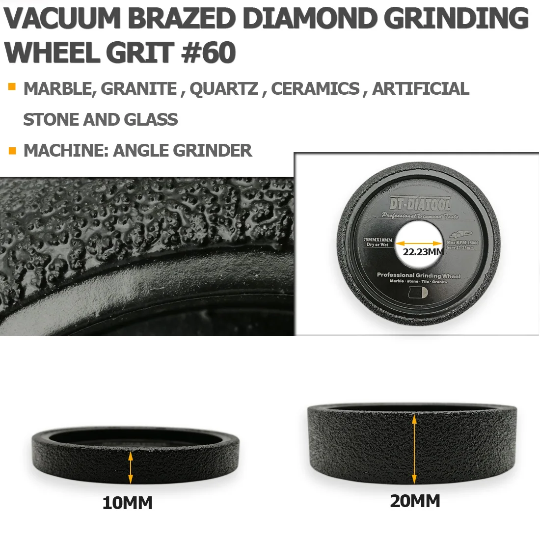 DT-DIATOOL 1 шт. диаметр 75 мм вакуумная пайка алмазного шлифовального диска плоский диск для шлифовального колеса на мраморном гранитном кварцевом керамическом камне