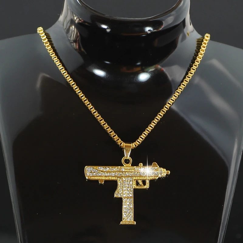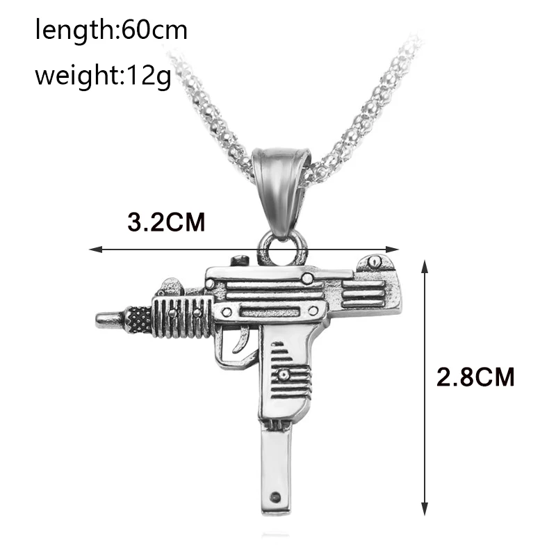 Очаровательная подвеска в форме пистолета УЗИ в форме пистолета, панк, пистолет, армейский стиль, мужская цепочка, ожерелье для мужчин, ювелирные изделия, подарки
