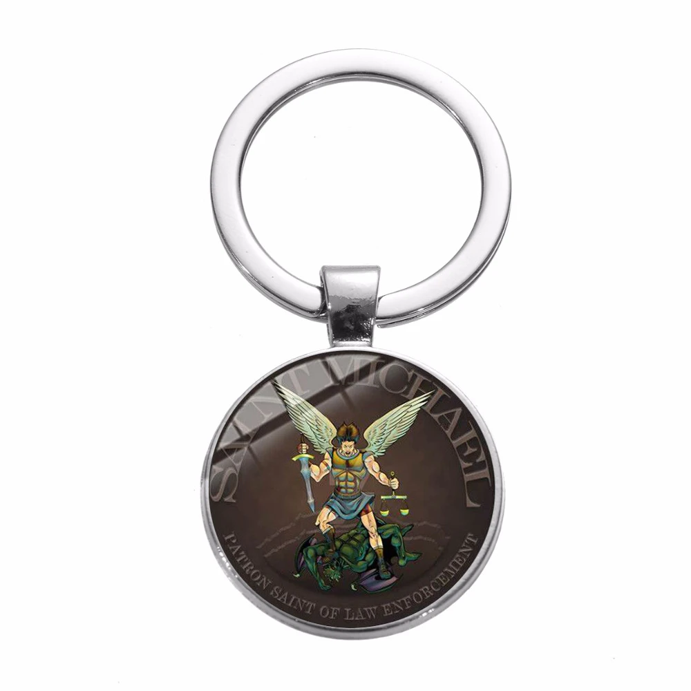 Азиатских Винтаж Архангел St. Майкл брелок защитить меня Saint щит ...