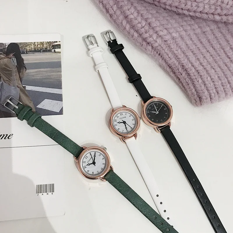 Простой стиль женские часы классические женские черные кожаные Наручные часы Ulzzang модный бренд Прямая поставка Женские кварцевые часы