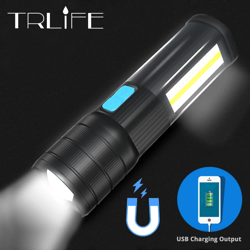 Многофункциональный светодиодный фонарик T6L2P90, 5200 мАч, с COB матрицей, красный, белый, синий, прожектор с сильным магнитом в качестве внешнего аккумулятора для телефона