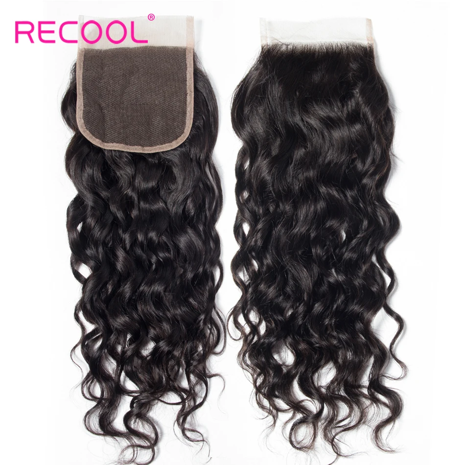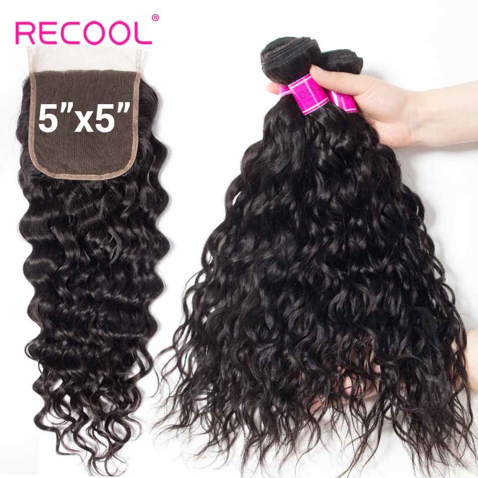 Recool волосы влажные и волнистые пряди с 5X5 кружева закрытие воды волна человеческие волосы пряди с закрытием бразильские волосы плетение пряди