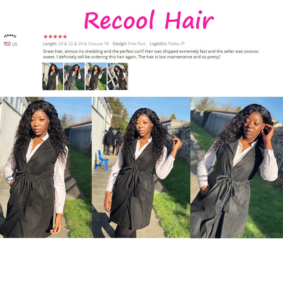 Мокрые и волнистые волосы Recool, пучки с 5X5 кружевной застежкой, волнистые человеческие волосы пряди с застежкой, бразильские пупряди для плетения волос