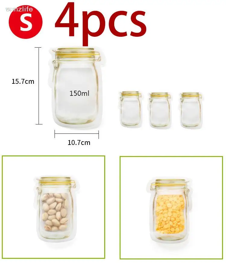 Мешочки с застежкой Mason Jar, многоразовые, для хранения пищевых п...