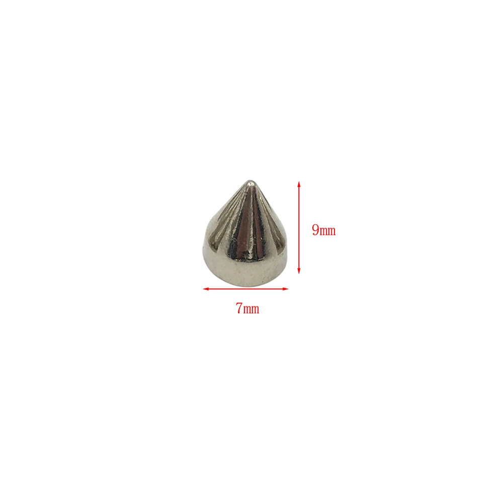 Шипы из сплава в стиле панк, 7 Х9 мм, набор из 100 серебряных шипов, Конические Винты, металлические заклепки для кожевенного ремесла, шипы в форме пули панк-пятна