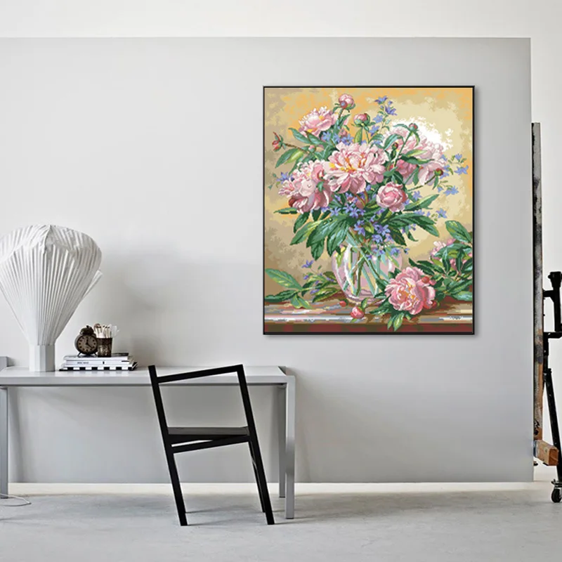 Наборы для вышивки крестиком с рисунком пиона и живота, Набор для вышивания на холсте 11CT 14CT, поделки «сделай сам», картины для домашнего декора