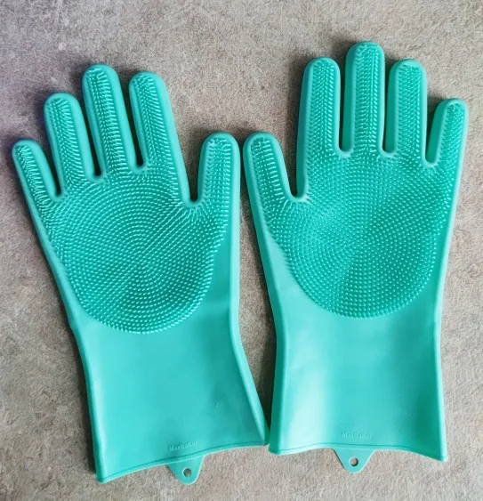 Силиконовые перчатки с шипами для мытья посуды (1 пара)