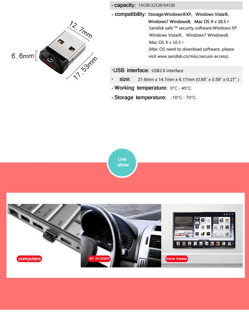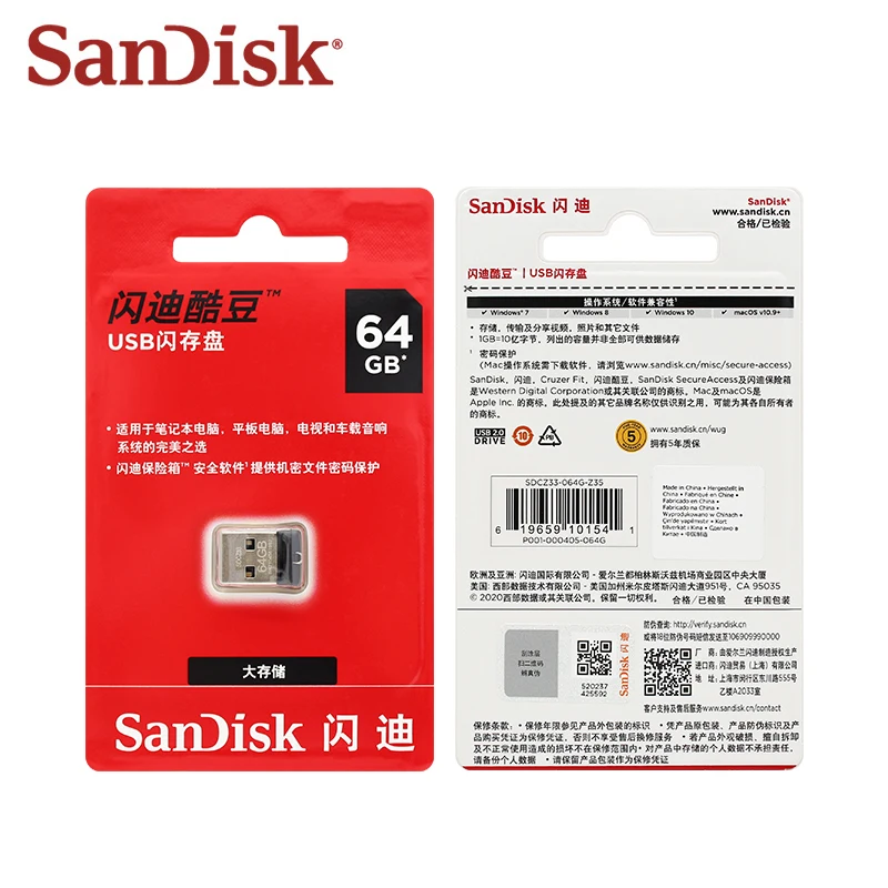 USB-флеш-накопитель SanDisk 100%, CZ33 Mini, 64 ГБ, 32 ГБ, 16 ГБ