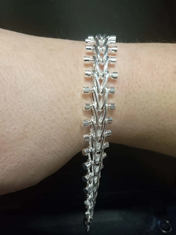 Очень красивая деталь, но вдохновляющая тем, что к браслету прилагается маленькое очарование 925 пробы, я не уверен, что этот браслет состоит из твердого серебра 925 пробы. Раньше я сам был электропластиком, и этот браслет имеет уникальный Яркий вид покрытого серебром, а также рифленую текстуру серебряной пластины, которая видна по краям, углам, И между частями покрытых компонентов ювелирных изделий. Натуральное Твердое Серебро только блестит там, где оно было отполировано, а нижняя часть колец и зон слишком маленькая, чтобы быть достигаемой полировочными инструментами тусклая и грубая .. Настоящее серебро и посеребренное серебро не одного и того же серебряного цвета, плюс блеск, хотя и искусственный, ярче с покрытием, и он не такой яркий с натуральным серебром. Натуральное Серебро имеет небольшие неровности, такие как шрамы или ямы.... В то время как посеребренные ювелирные изделия могут иметь области неровного покрытия, а также то, что они быстро стираются после воздействия некоторых элементов... и определенно от пота. Я знаю разницу.
