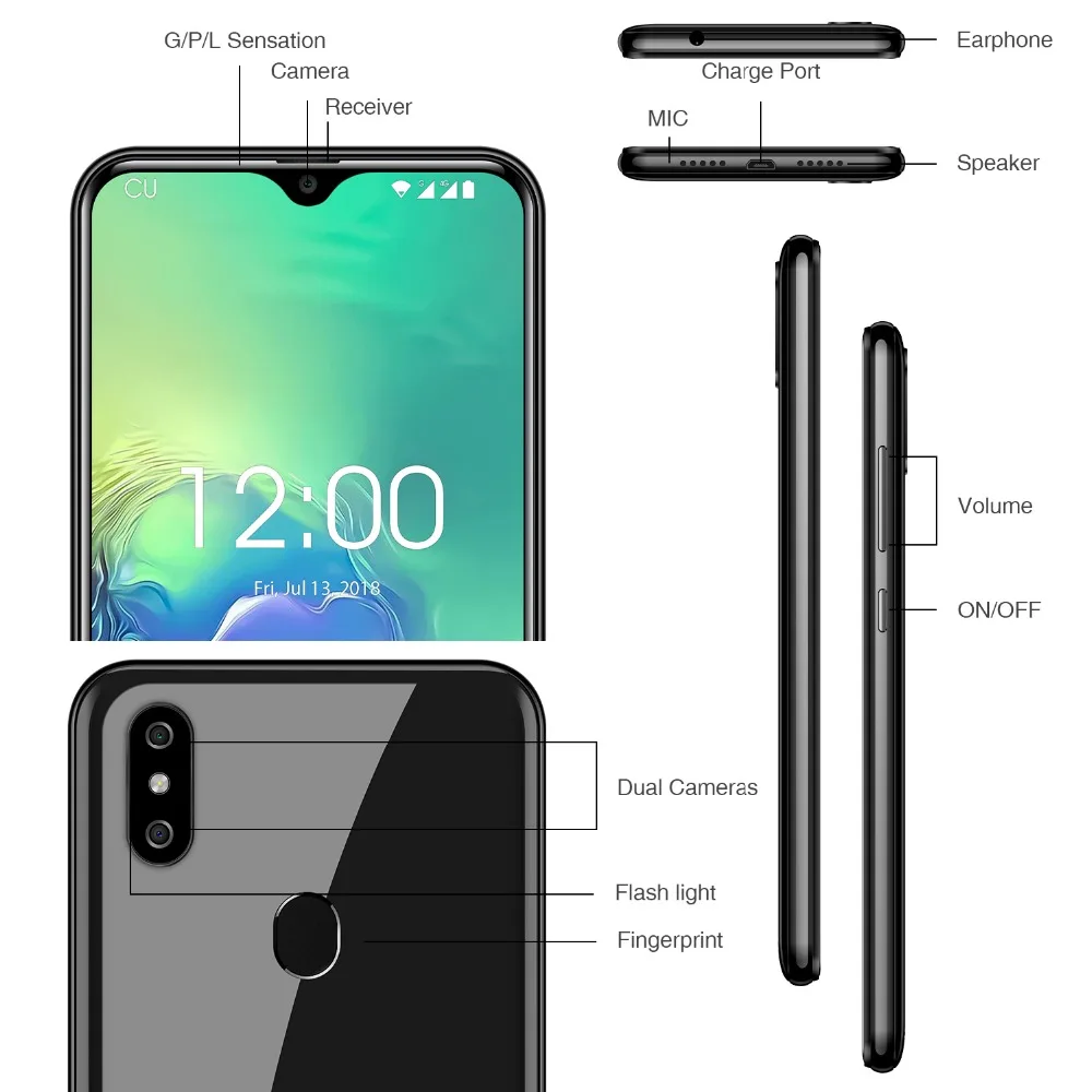 Смартфон OUKITEL C15 Pro, 2 ГБ + 16 ГБ, Android 9,0, мобильный телефон, MT6761, сканер отпечатка пальца, лица, 2,4G5G, Wi-Fi, 4G LTE