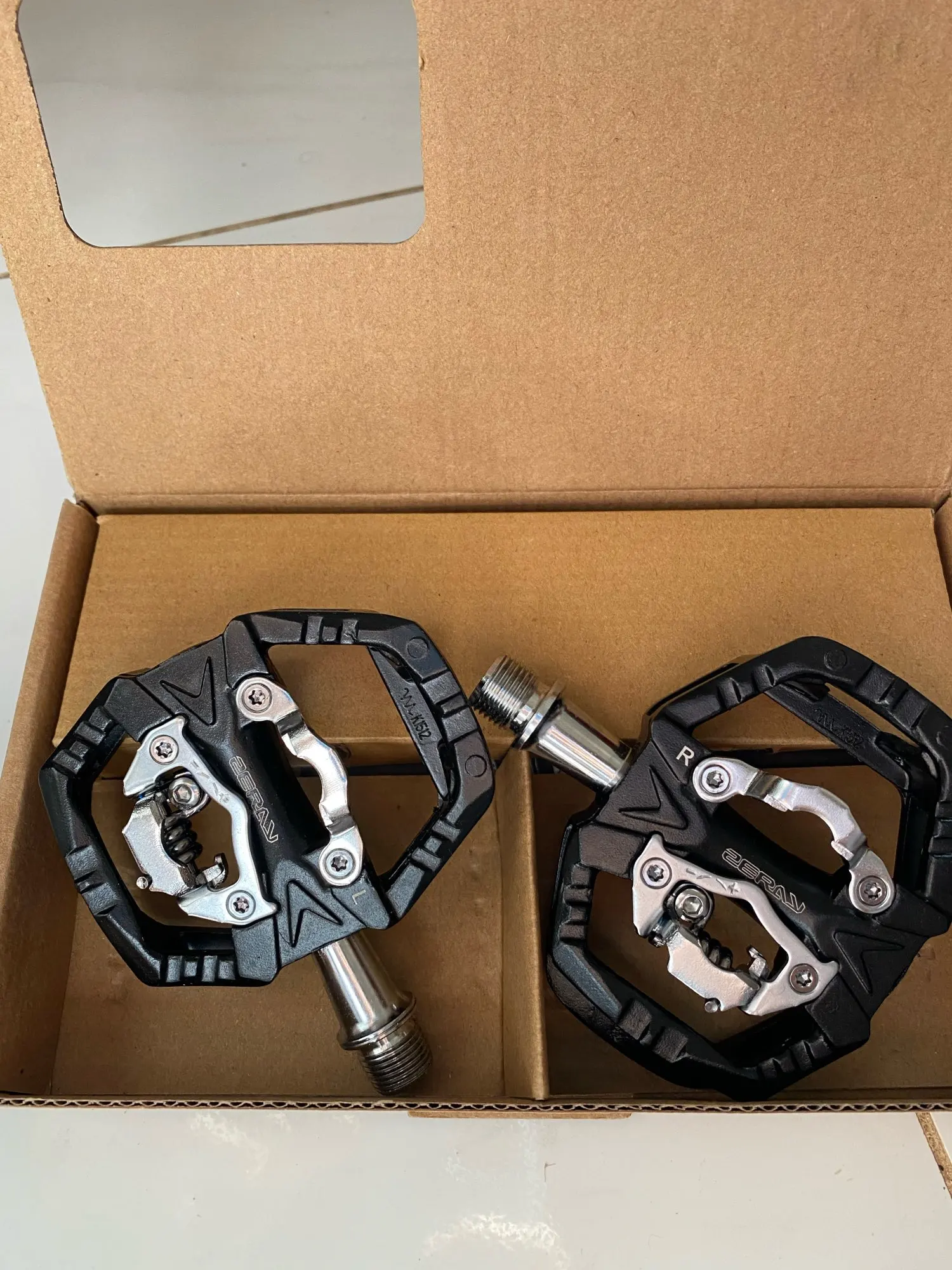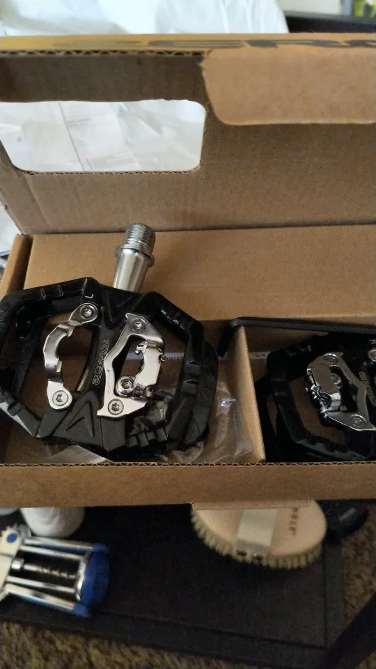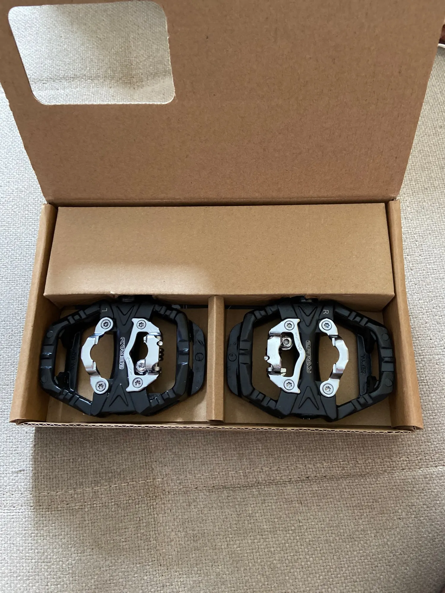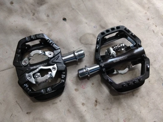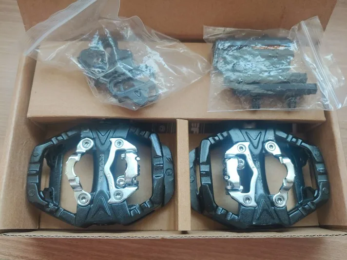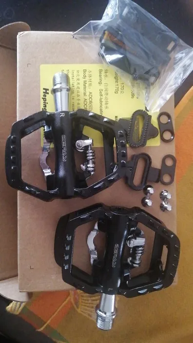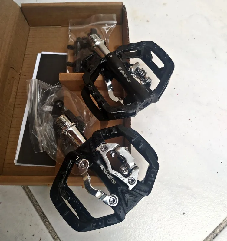 SPD педаль zeray хорошие. есть возмжность пользоватся плоской педалью- топталкой. Хорошо к ним подошли мтб велотуфли с Алиэкспресса. Защелкиваются педали немного туже чем отстегиватся. Для того чтобы застегнуться надо вдеть заднюю часть хомута и надавить весом тела на носок велотуфлей, хомут защелкнется. Отстегиваться надо поворотом пятки в бок от шатуна.