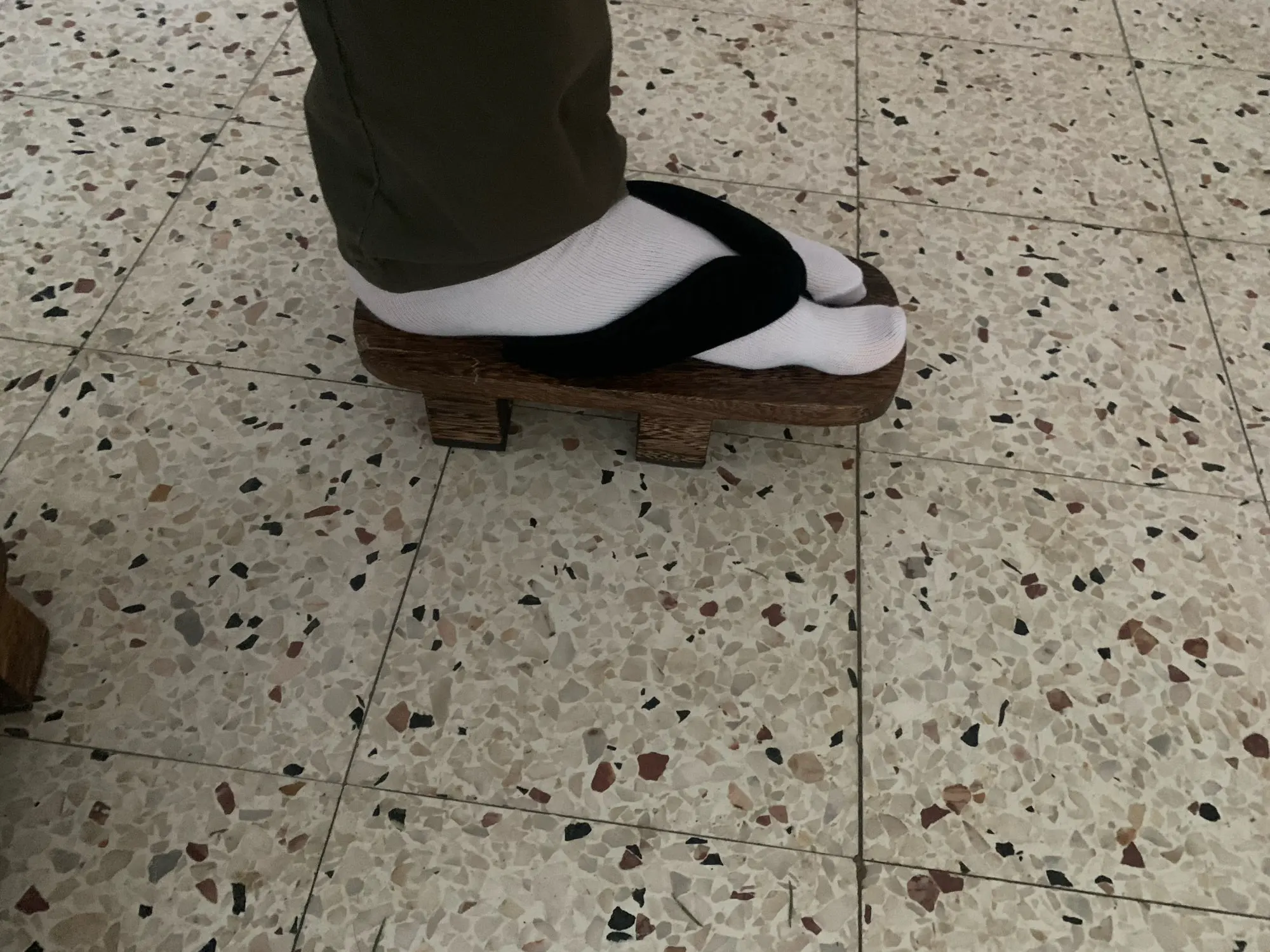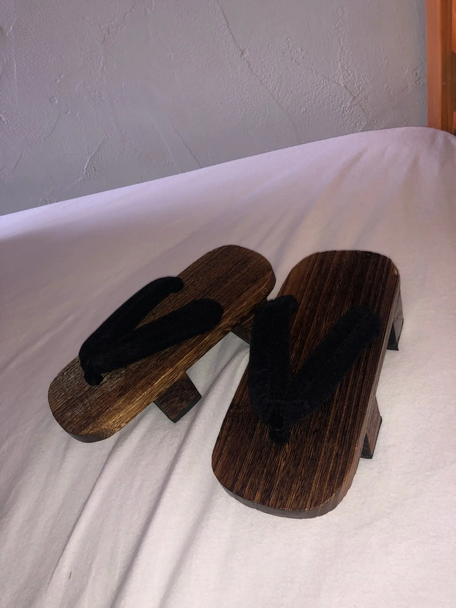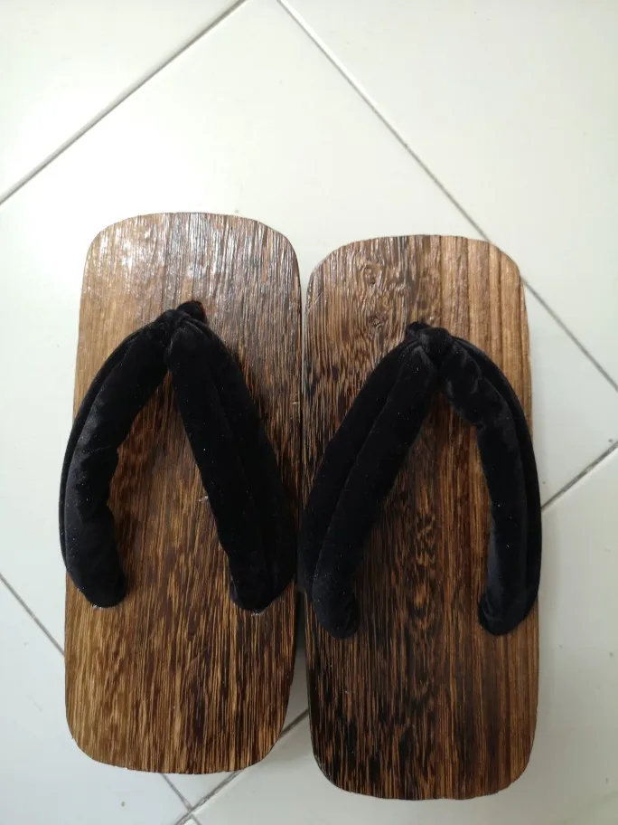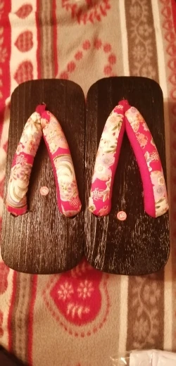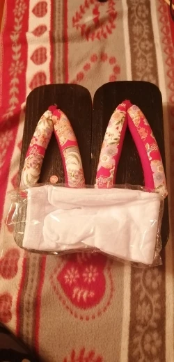 Увы размер не подошёл,носки в комплекте, неудобно что точка соединения ткани с деревом ровно по центру,поэтому нога сидит криво, единственный выход одевать между указательным и средним пальцем,больше претензий нет,нашел у другого продавца такие же гета с нормальным соединением для пальцев.