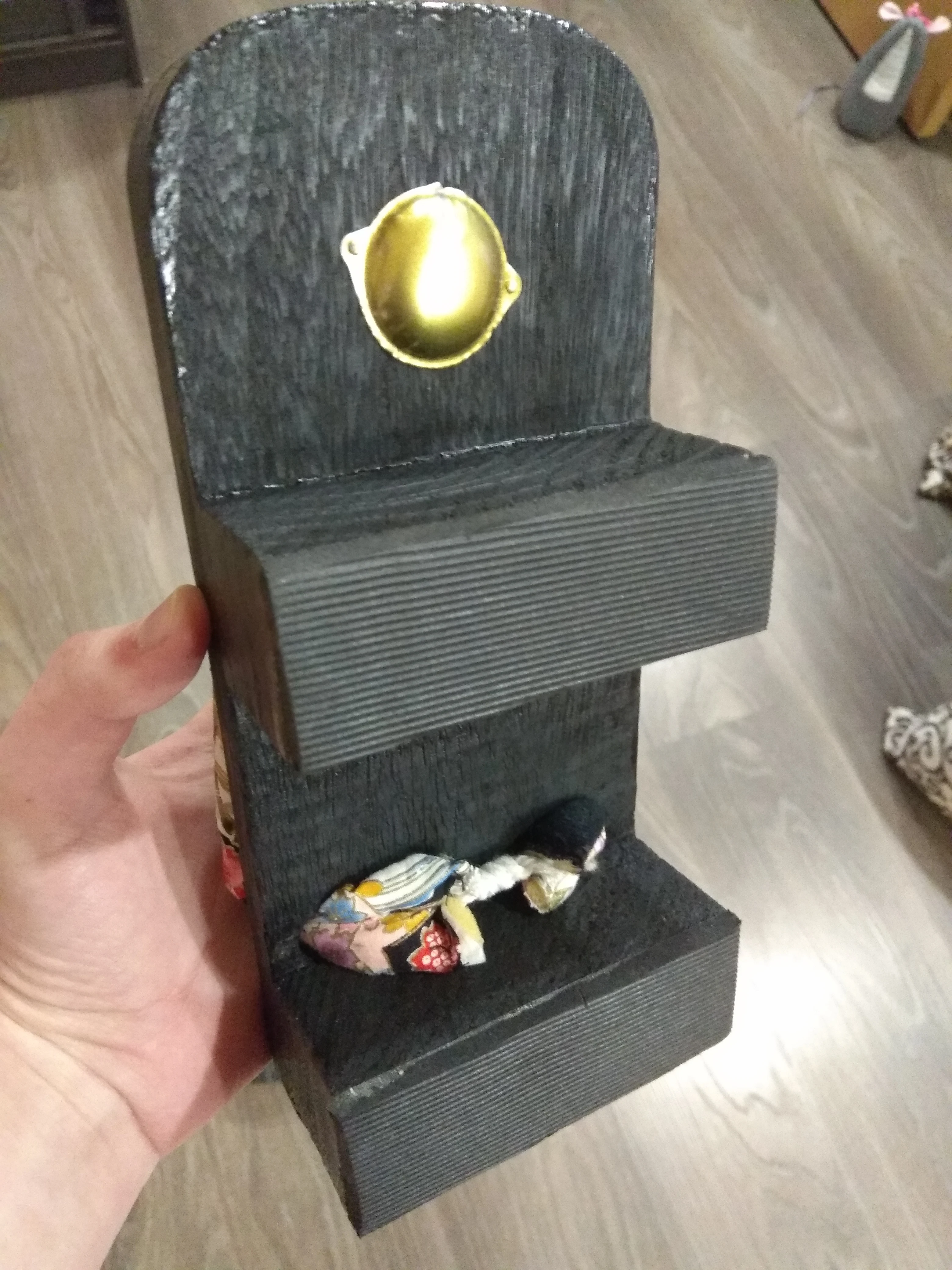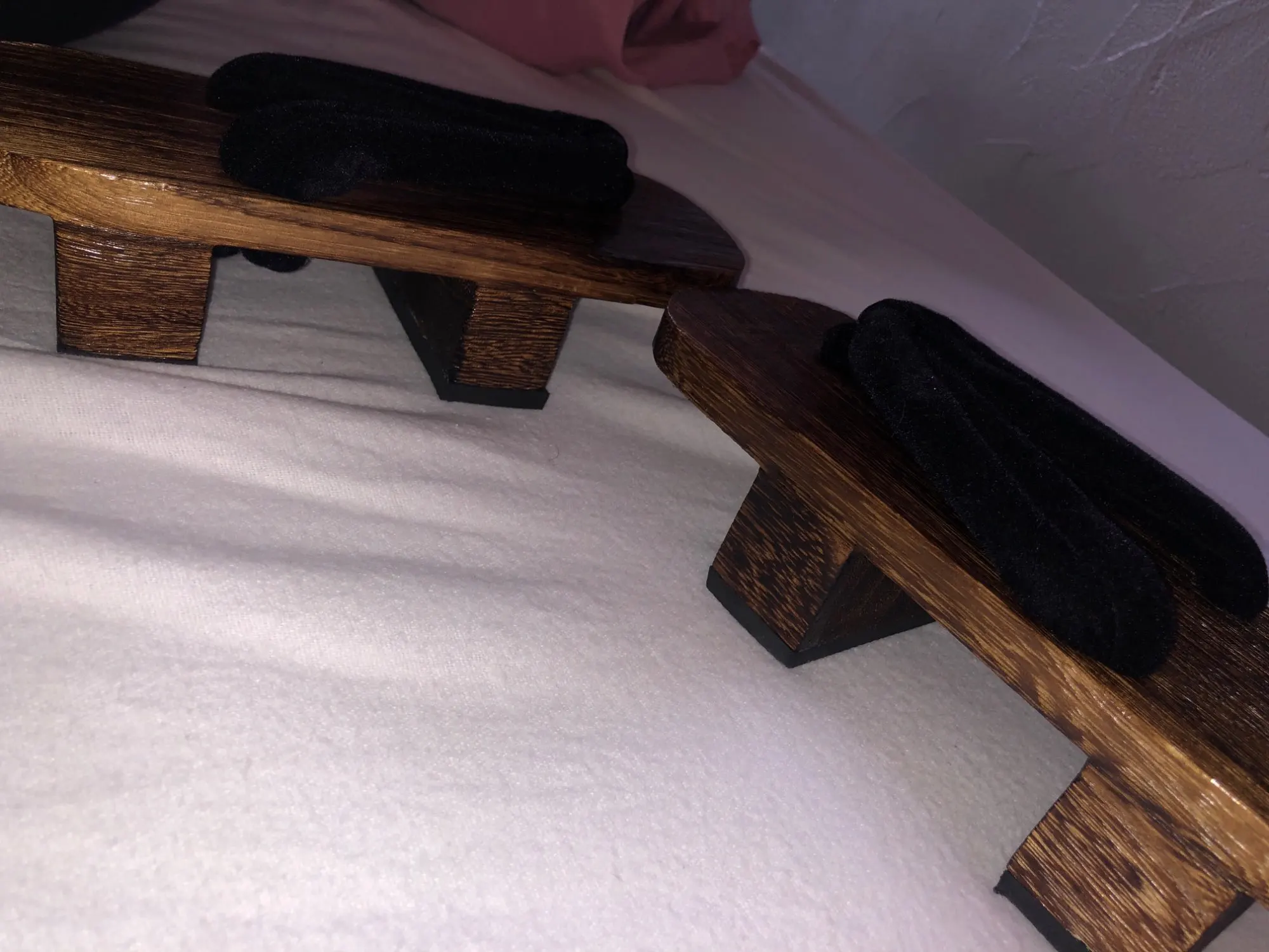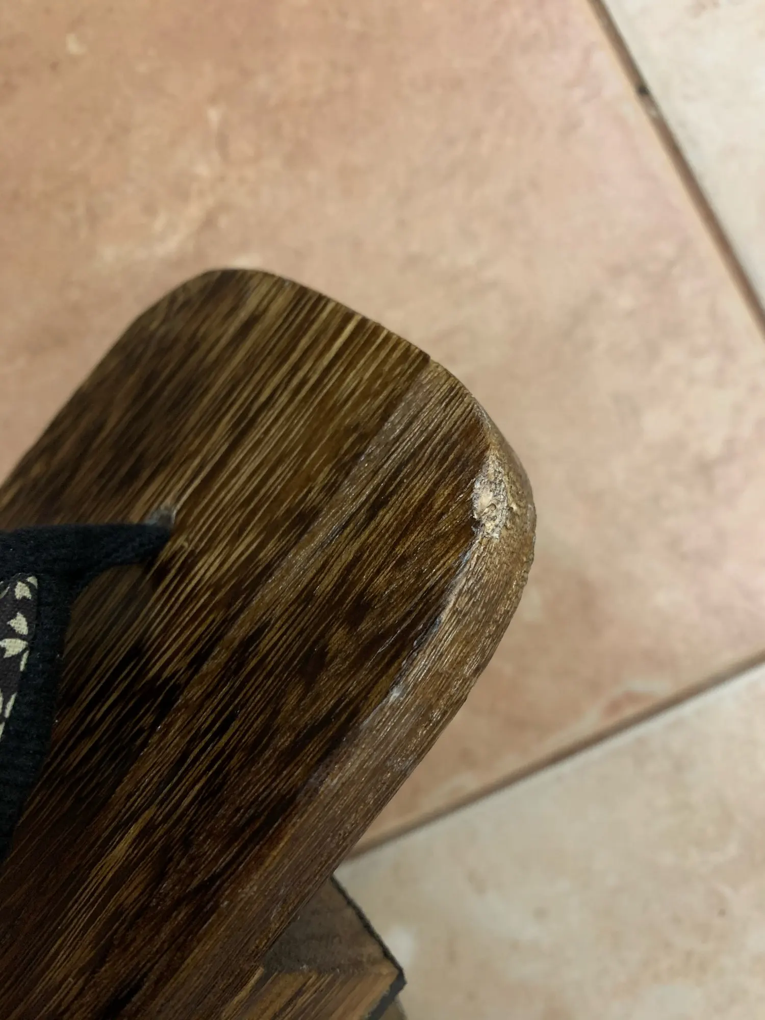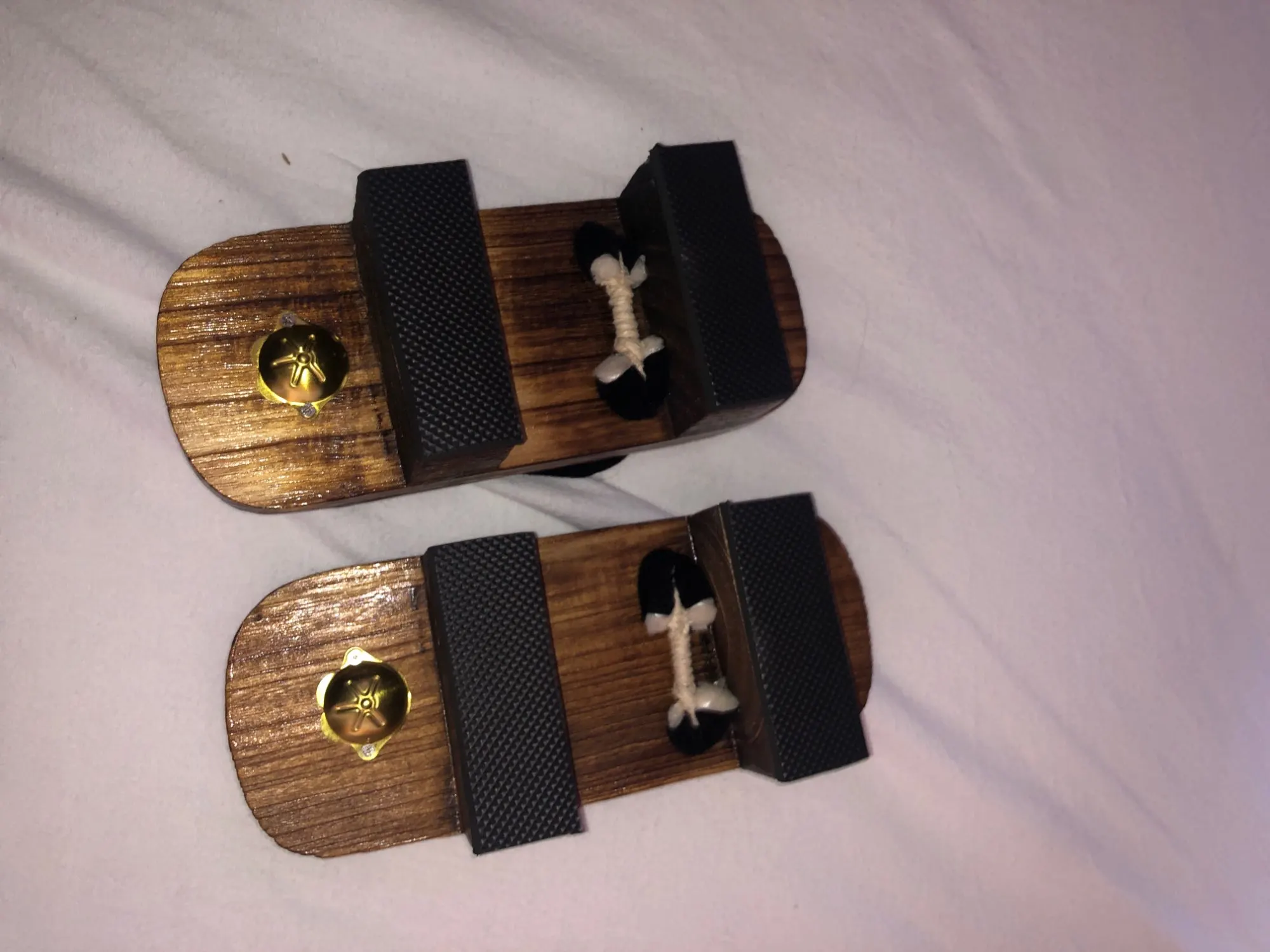 Мне понравились тапочки, все как на картинке, но не знаю, уж я их так сильно долбанула,или все же дерево некачественное, но как-то они у меня случайно стукнулись о тумбочку и кусочек древесины отслоился. В принципе, этого почти не видно.
